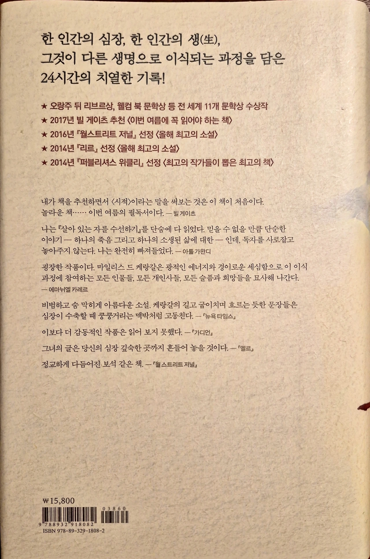 작품 한 권에 뇌사 판정을 받은 한 청년의 심장이 다른 사람에게 이식되기까지의 24시간을 다룬 강렬하고 세밀한 기록으로 꾸린 작품이다.