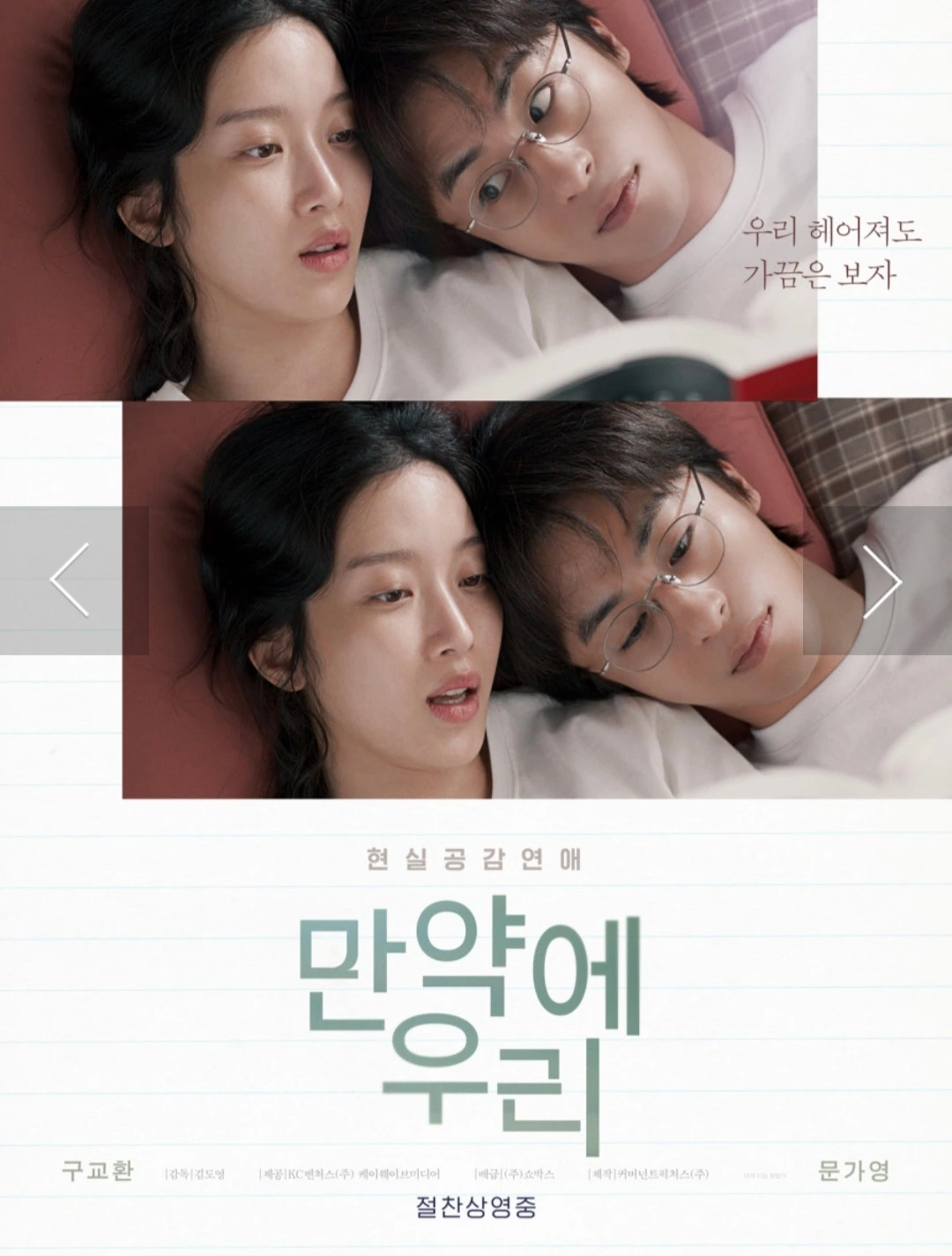 말랑말랑 따스해지는 멜로영화로 검색하다가 늘 영화를 고르는 기준에서 1번은 배우이기에 고른 영화가 구교환 문가영 배우가 주연인 '만약에 우리'가 낙점되었다.
