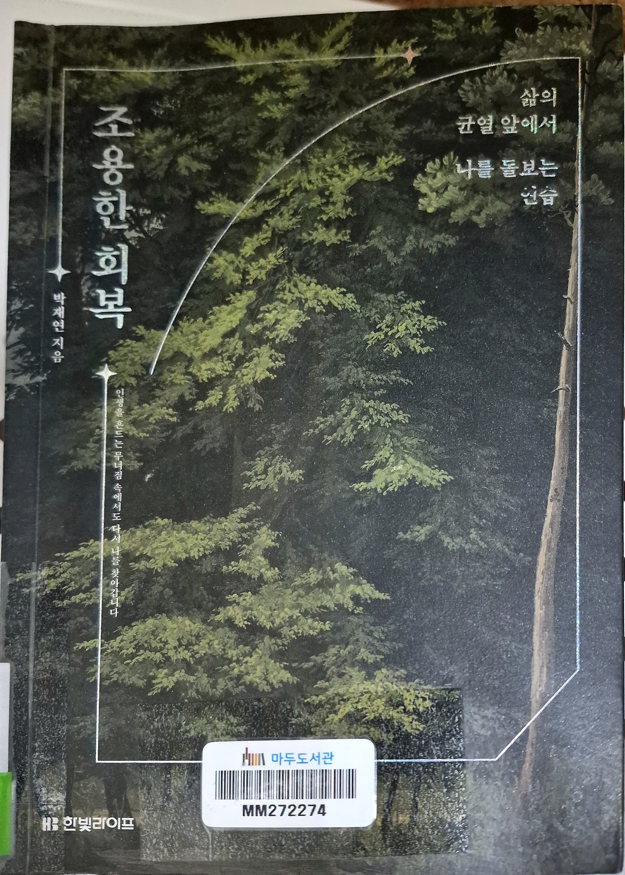 심리 독서 모임 텍스트로 만나서 읽은 책은 ' 조용한 회복'이라는 책이다. 제목에서도 느껴지듯이 상처받은 내면을 살피는 내용으로 구성된 책이었다.