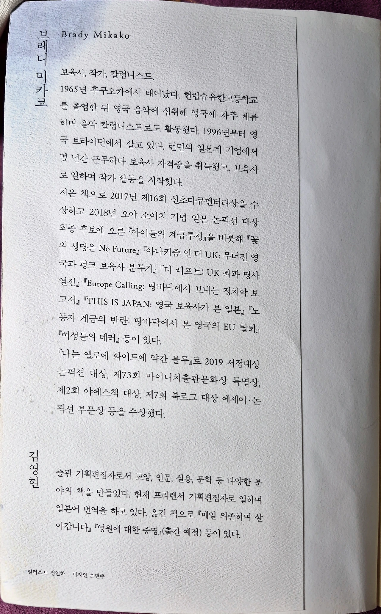 일본인 엄마와 아일랜드 아빠와의 사이에서 태어난 아들을 영국에서 교육시키며 겪는 어른들의 성장 이야기면서 아들의 성장기를 기록한 내용이었다. 일본에서 태어나서 영국에 거주하며 아이를 교육시키고 공동체에서 여러 가지 일을 겪는 상황을 남긴 에세이였다. 저자인 브레디 미카코는 칼럼니스 트면서 보육사라는 직업을 가진 일본 여성의 시각이 담겨있는 책이었다.
