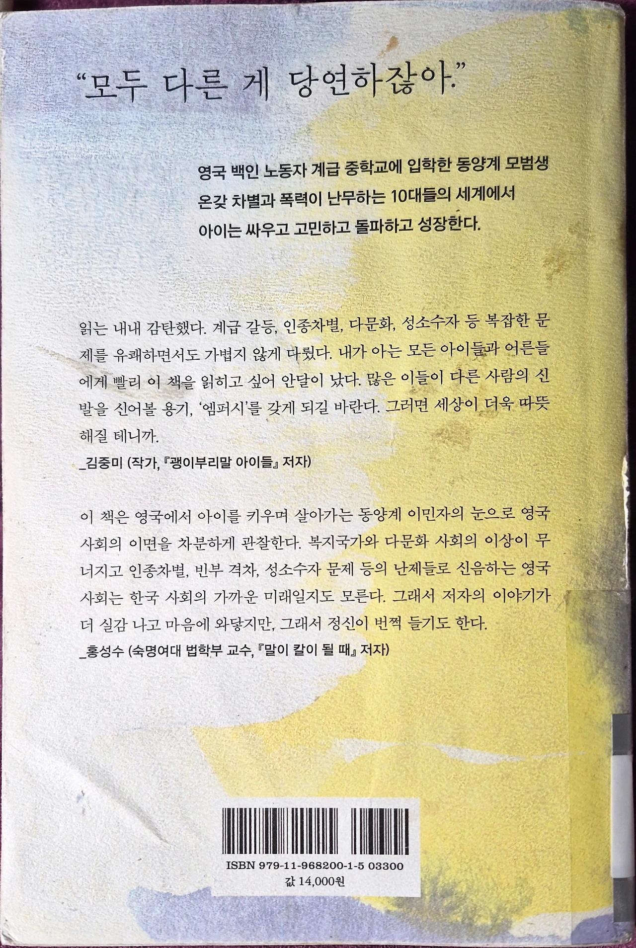 심리클럽 독서모임 중 다른 멤버분이 가져온 책을 살피다가 흥미가 생겨서 빌려와 부지런히 읽고 반납하기로 하였다. 다양성의 문제와 이민자의 삶과 교육적인 문제까지 다양한 문제의식을 다루는 책이었다.