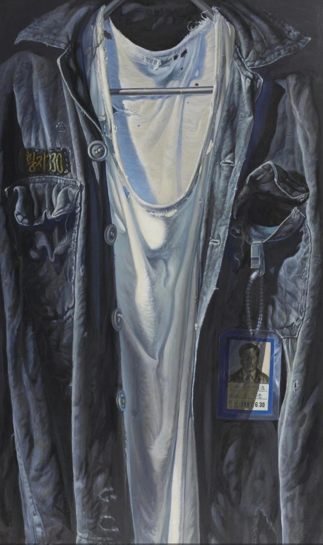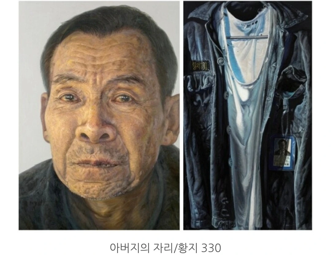 80년대 당시 황지 탄광 매몰 사고를 목격하며 남기게 된 작품은 치열한 삶의 흔적으로 낡은 작업복만 남긴 채 사라진 광부를 애석해하는 심정이 절절하게 표현되었다. 바로 탄광 속 광부를 표식 하는 '황지 330'이라는 작품은 이름 없는 노동자로 끝내 생을 마치는 처절함으로 엄청 아리게 한다.