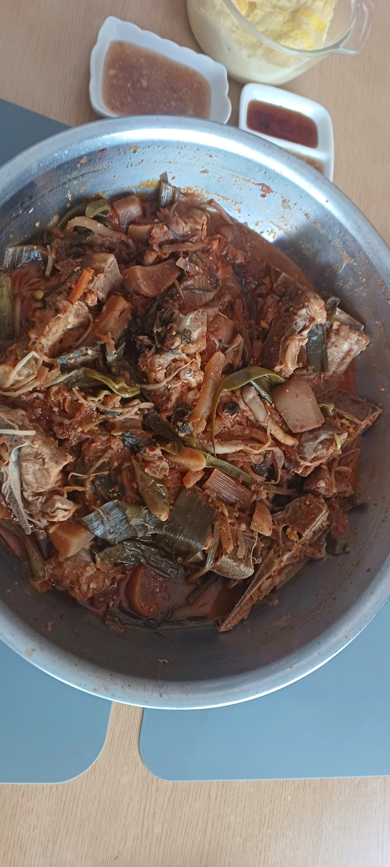 푸짐한 돼지 등뼈를 요리해서 여유 있는