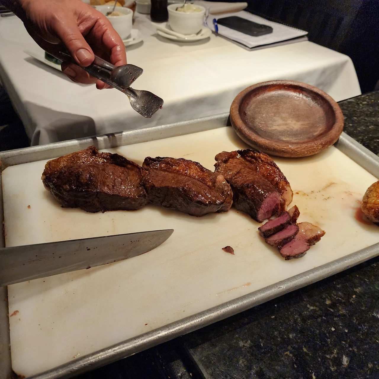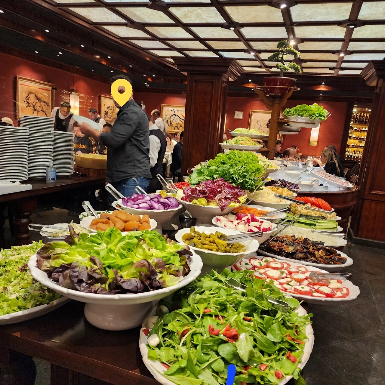 손님은 직원이 큰 칼로 써는 고기를 Rare 또는 Medium 등 취향에 따라 주문하며 썰어준 고기를 직접 집게로 받아 접시에 올리면 된다.