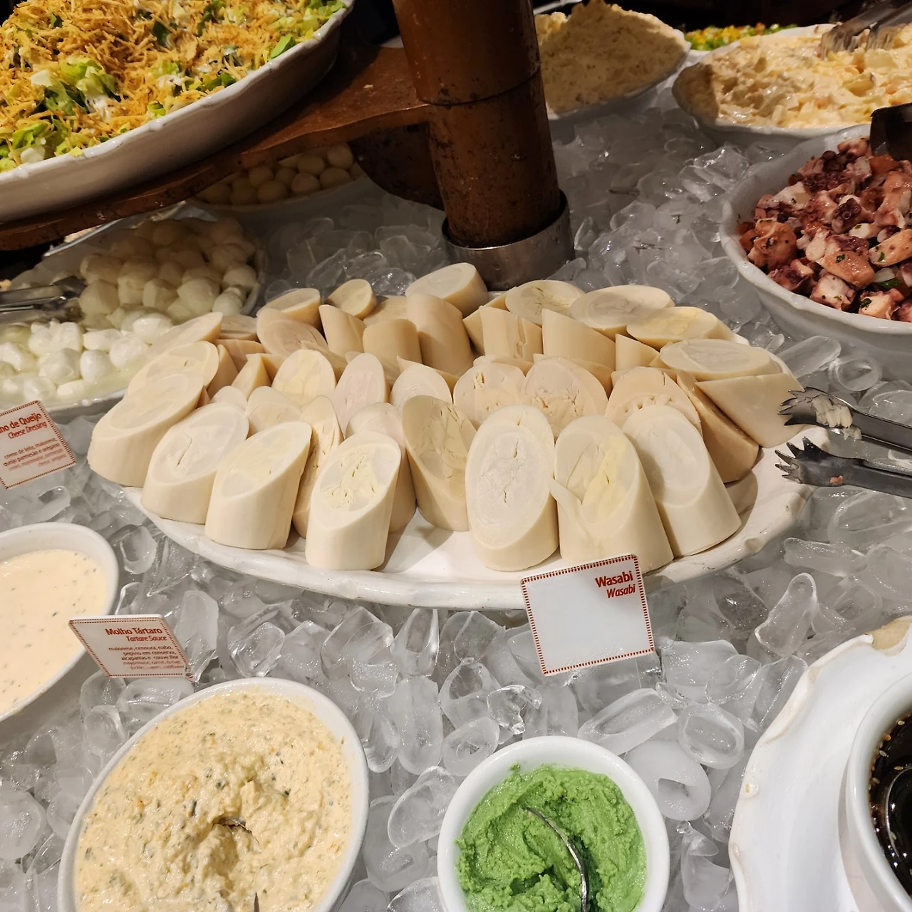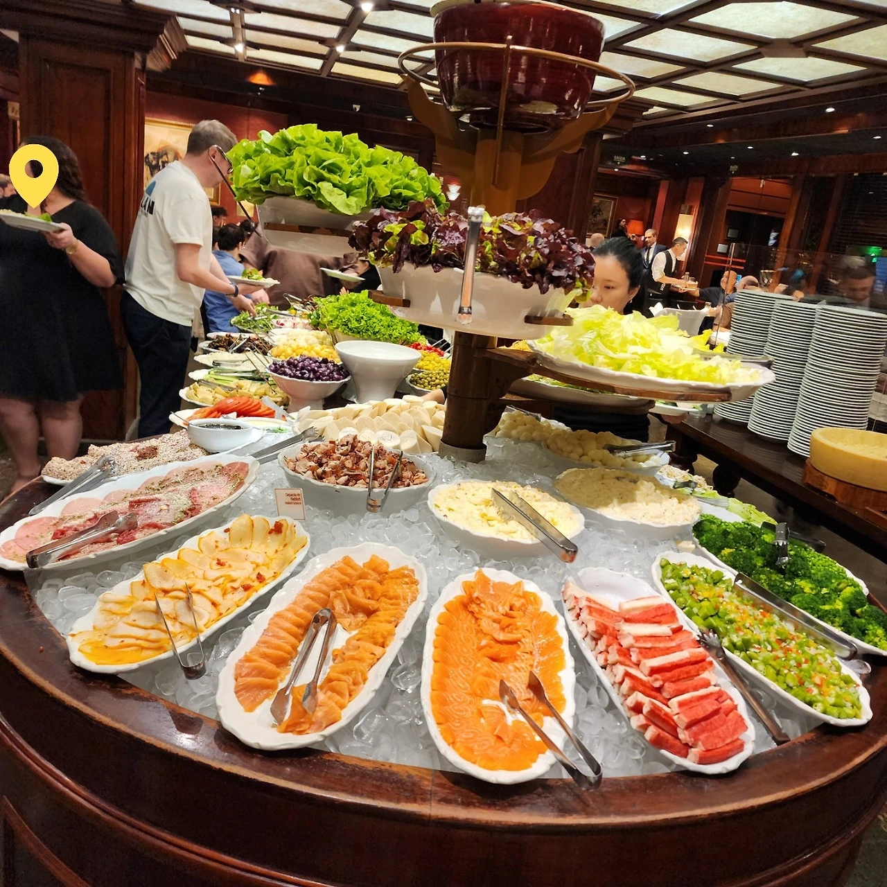 여러 가지 신선한 채소, 냉훈제 연어뿐 아니라 새우, 문어등 다양한 해산물을 곁들인 각종 시푸드 샐러드가 마련돼 있어 고기에 느끼함을 잡아주며 고기의 풍미를 더욱 돋우워준다.