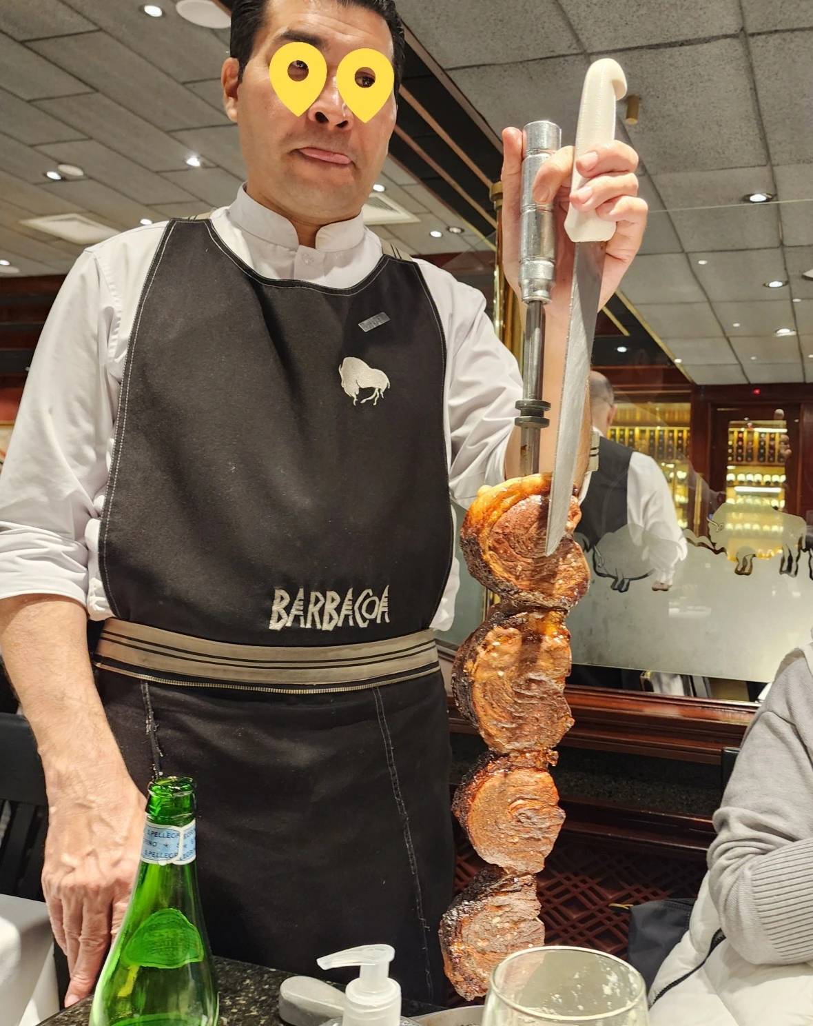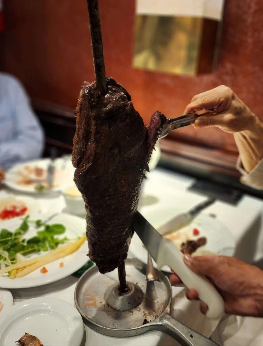 슈하스카리아 Barbacoa에서는 매너 있고 숙련된 직원들이 갓 구운 육즙 가득한 고기를 꼬치에 꿰어 테이블을 돌며 직접 썰어준다.
