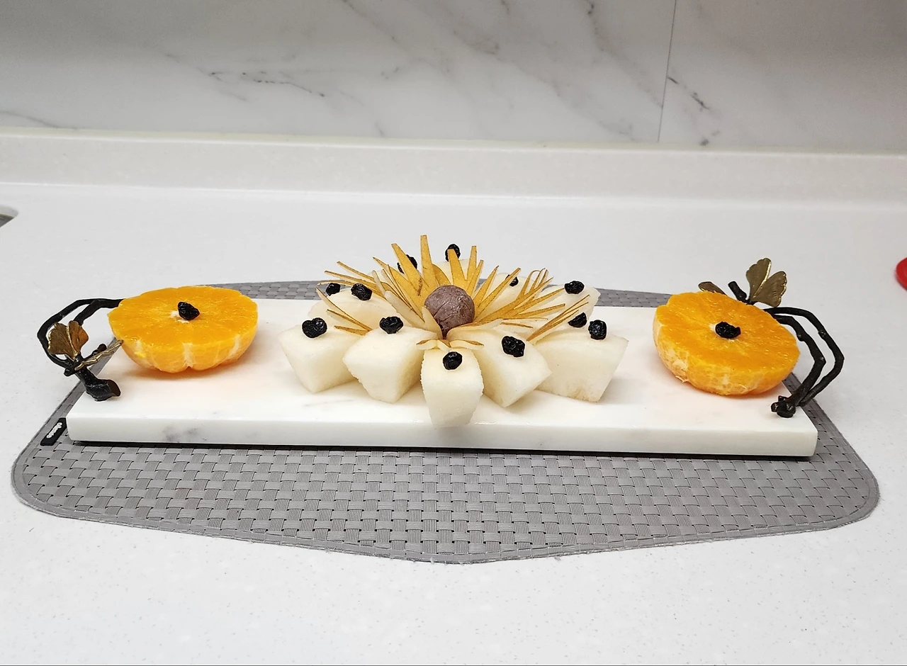 어느 날 하루, 심심풀이로 과일을 이리저리 모양내어 깎아 접시에 담았는데 "와! 예쁘네~"