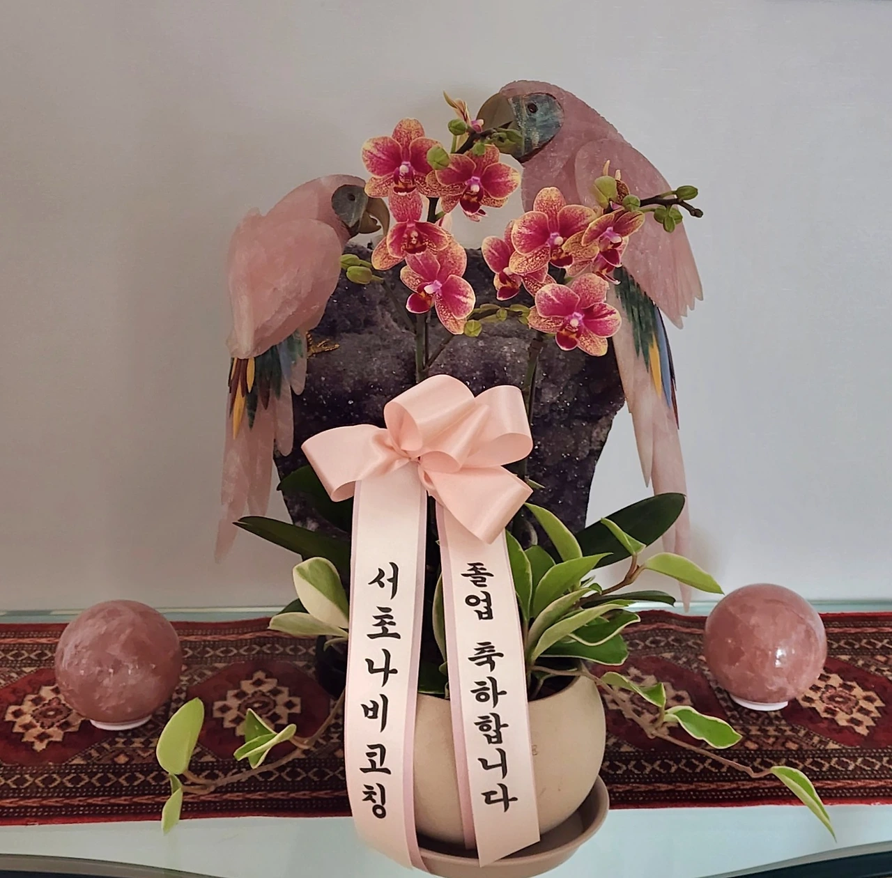 그런데 화분의 리본 문구에는 '서초 나비 코칭 졸업을 축하합니다'라고 적혀 있었다.