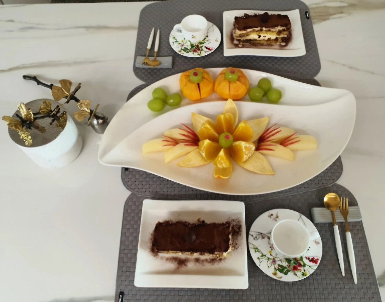 이것저것 예쁜 접시에 담아 상에 올리니 소박한 아침 생일상이 차려졌다.