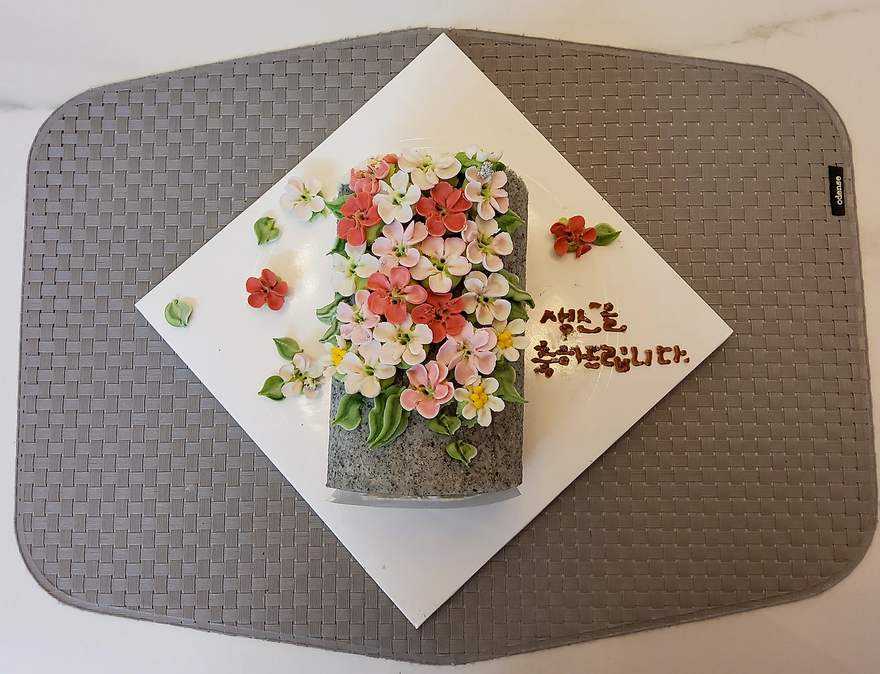 *너무 예쁜 떡케이크를 차마 자르지 못하고 한참을 바라보다가 결국 먹다 말고 사진을 남겼다.