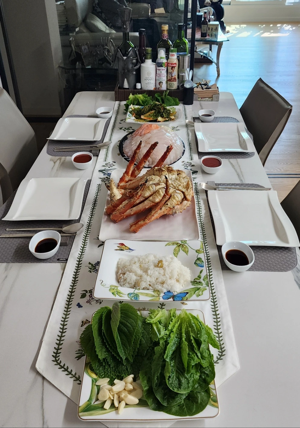 *싱싱한 활어회와 초밥, 큼직한 킹크랩까지 더해져 한층 풍성해진 식탁*