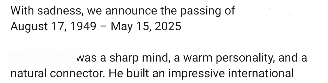 이런 상황에서 갑작스러운 부고를 접해 놀랐습니다. 정확한 사인은 알 수 없으나 70대 중반이면 아직 가실 나이는 아닌데 안타깝습니다. 과거의 안 좋은 기억을 덮을 만큼 긍정적인 기억을 함께 만들고 있었기에 더더욱 안타깝습니다.