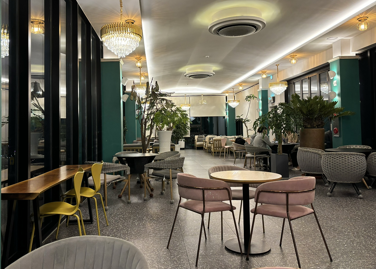좌석 사이에 식물 배치해서 분리감을 줌. 훨씬 괜찮은 듯.