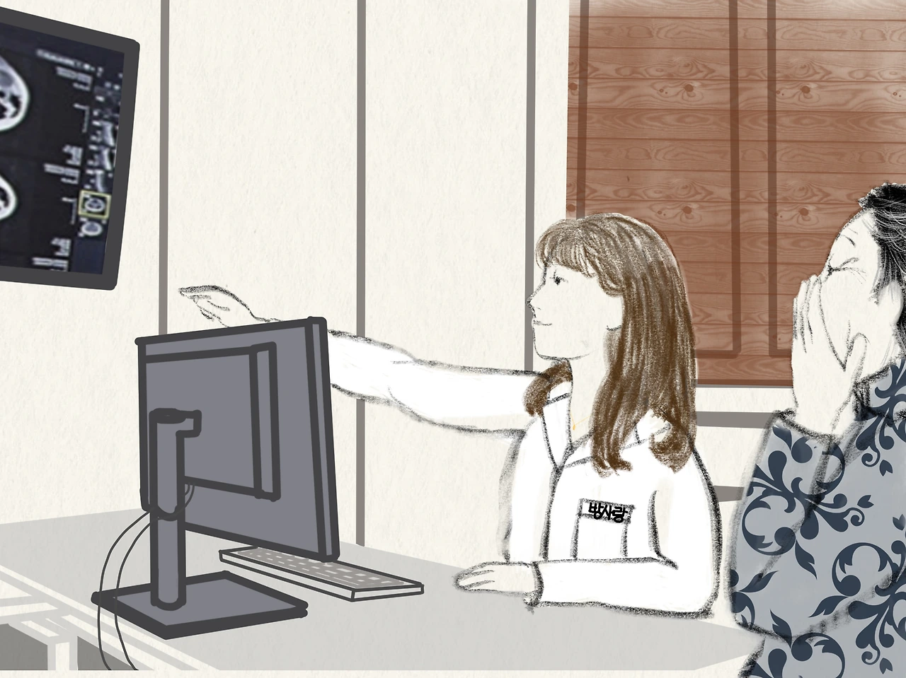 예약된 진료 날짜가 닥치면, 언제 그랬냐는 듯이 장녀 K와 지 여사는 잔뜩 긴장한 채 함께 병원에 갔다. 이번에는 일주일 전에 했던 CT촬영과 피검사 자료를 토대로 담당 의사 선생님으로부터 지 여사의 상태를 듣는 날이다. 먼저 방사선 담당 의사 선생님을 만났다.