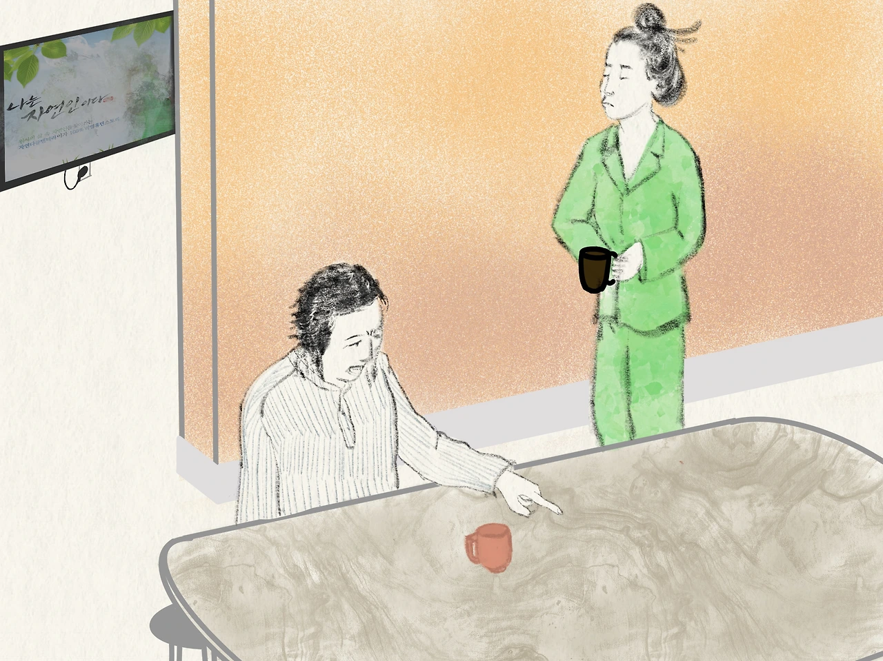 몇 개월 만에 기력을 회복한 지화자 여사가 비장한 심정으로 정한 아침 메뉴이다. 아침이면 TV는 어김없이 재방송 채널로 맞춰져 있었고, 지난밤 새벽 2시에 잠자리에 든 장녀 K지만 8시 반이 되면 어김없이 엄마 지 여사가 내린 커피를 마셨다. 비몽사몽 하는 장녀 K 옆에 앉아, 지 여사는 전날 오후부터 저녁 사이에 있었던 가십거리와 아빠에 대한 불만을 토로했다. 이건 분명 모닝커피 값이다.