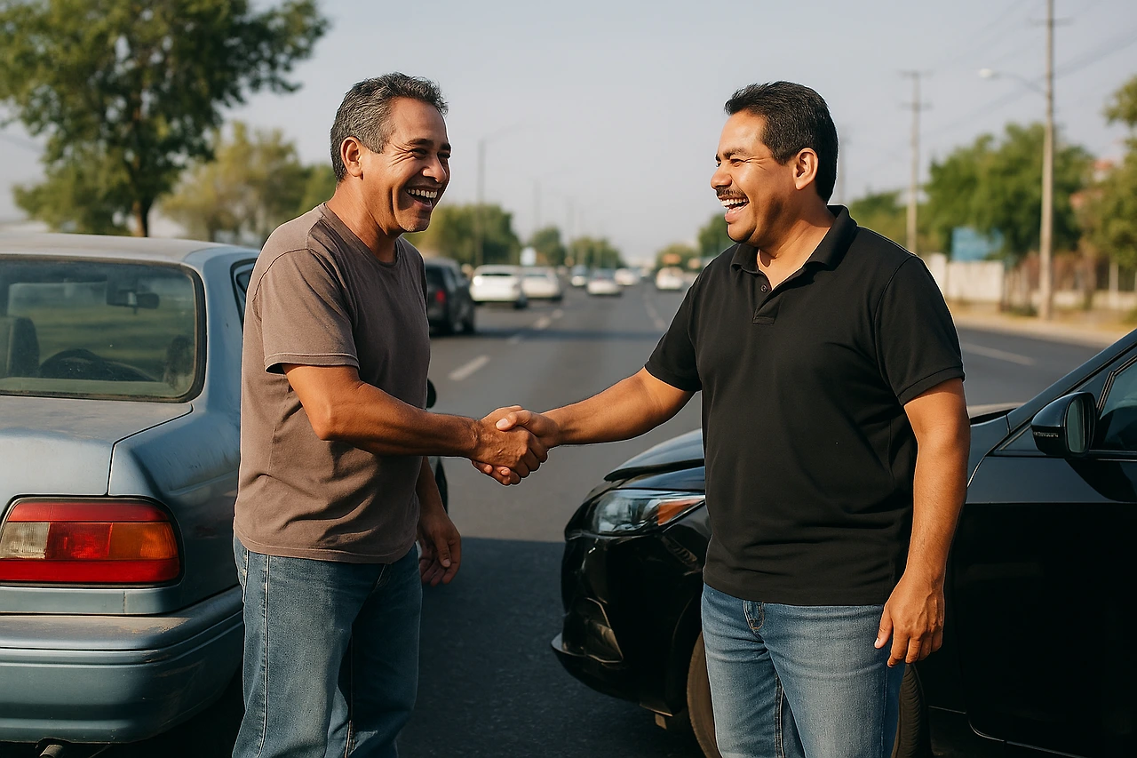 두 운전자가 차에서 내리더니, 싸우기는커녕