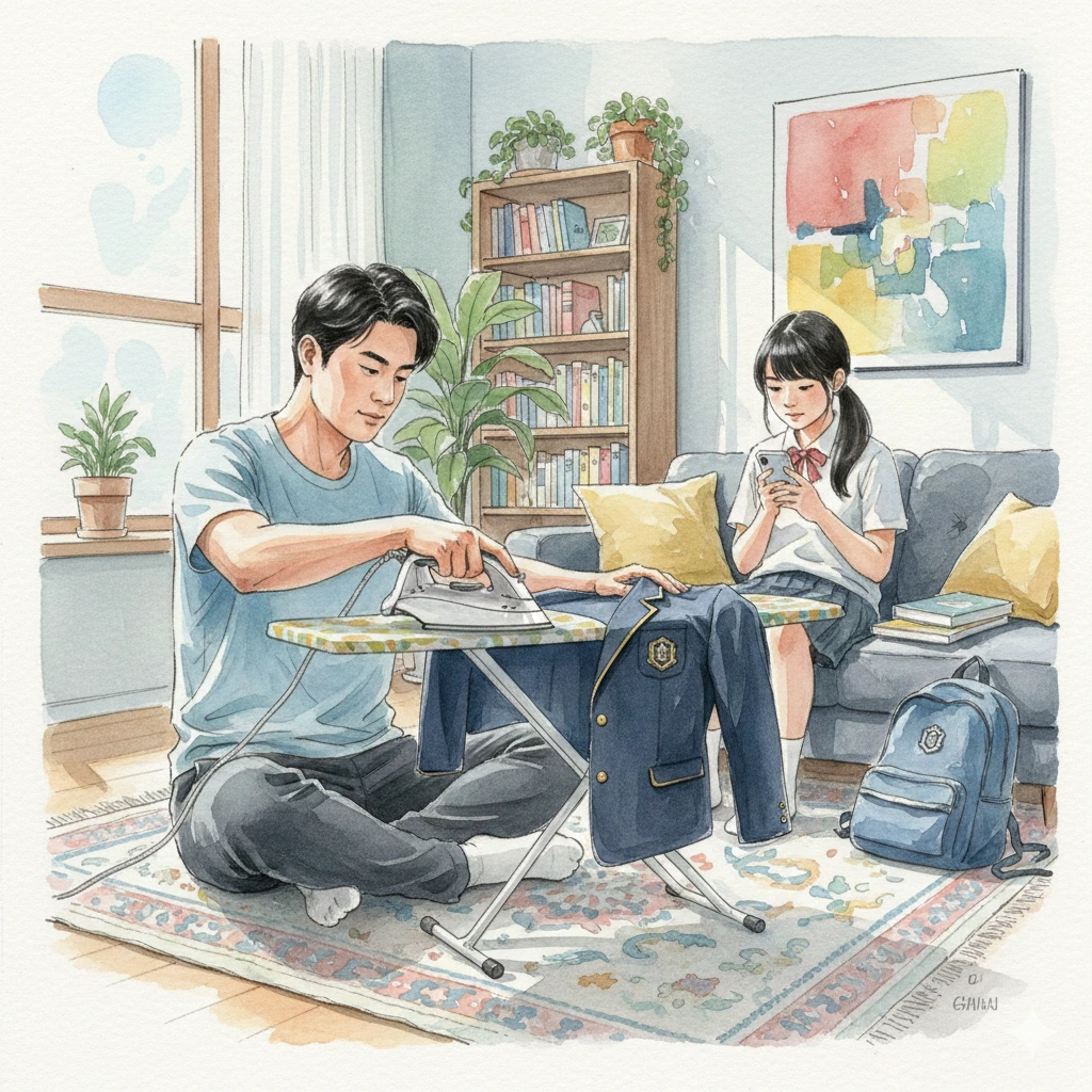 딸아이가 중.고등학교를 다닐 때는 남편이 교복 다림질을 많이 해줬어요. '군대 시절 솜씨 발휘하면 다 죽었다'고 하더니 역시 예사롭지 않은 다림질로 교복 소매 날을 세우고 깃은 두 번 세 번 다려서 힘을 빡 주고 말이죠. 남편의 논리는 딱 하나예요. 구겨진 교복 입은 여고생은 이미지 깨지지 않느냐는 거죠.