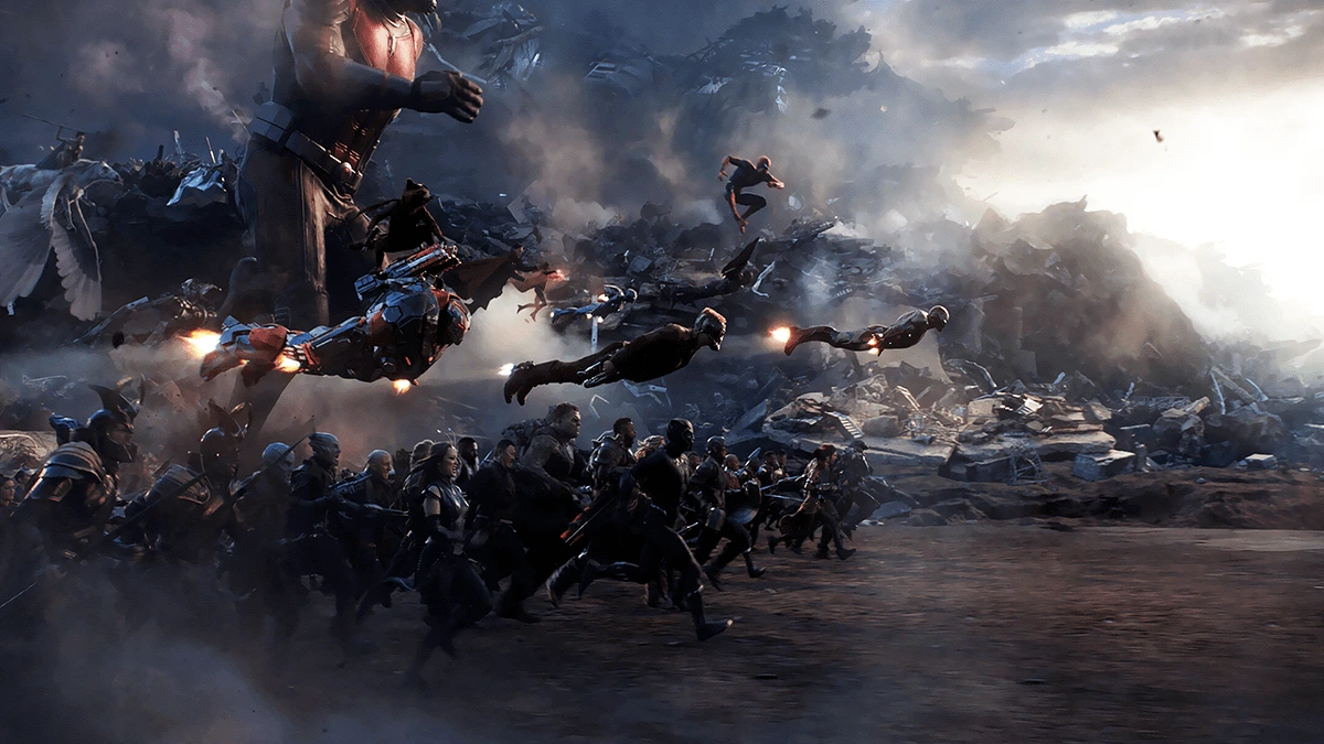 <어벤져스: 엔드게임>의 클라이맥스. 10년의 역사와 각본의 기술이 조화된 명장면이다.