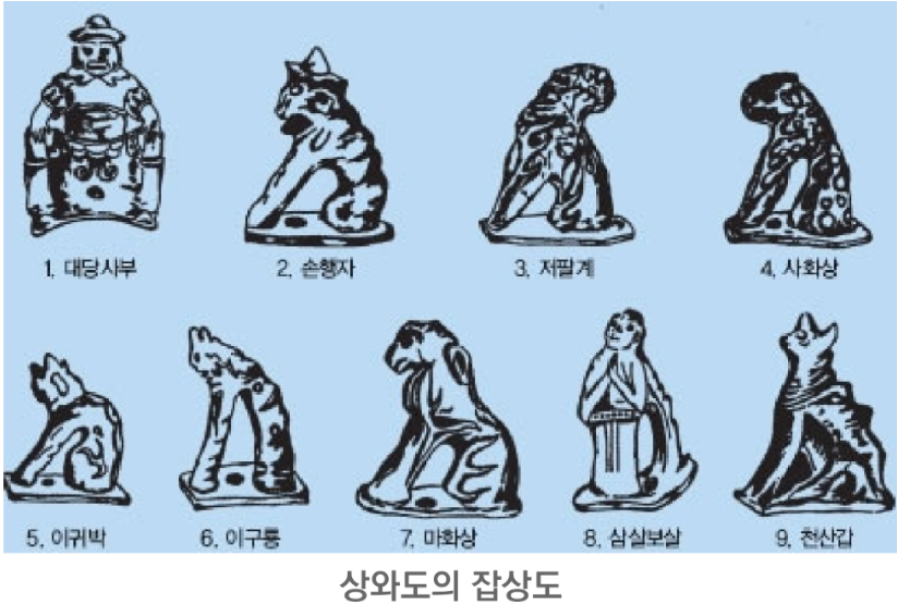 왼쪽 대당사부는 아무리 보아도 사람(스님)의 모습이 아니다.