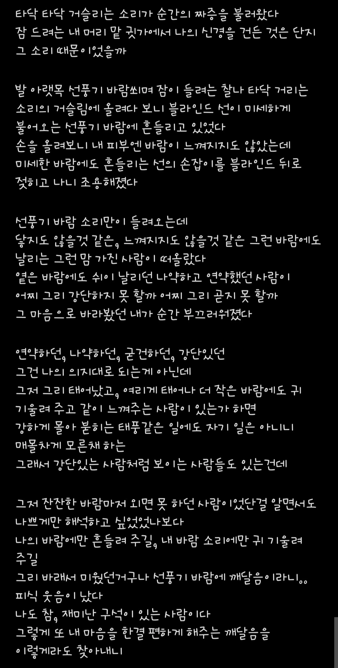 나야 서울에 있었다지만 같은 부산에 살면서도 수정이가 한 번 잠수 타면 한 해를 넘기는 건 기본이었으니 우린 모두 여전히 수정이가 잠수 타서 어딘가에 있겠거니 생각했다.