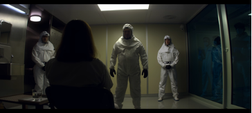 영화는 인간의 이성으로 모든 자연의 이치까지 이해하려는 인간의 오만한 행태를 꼬집는다. 예를 들어, 영화의 시작과 말미에 관객은 보호복을 입은 채 리나를 압도하는 세 명의 남자 연구원들과 유리 벽 너머로 리나를 관찰하는 다른 사람들을 마주하게 된다. 그중 한 연구원이 리나에게 던지는 질문들(“What did you eat?” “Can you describe its form?” “Was it carbon-based or…?”)은 쉬머 내의 상황을 인간의 이성으로 이해하려는 시도에서 기인한다. 그러나 리나와 함께 쉬머 내부 사건을 지켜본 관객의 입장에서는 연구원의 질문이 다소 허무맹랑하게 느껴진다.
