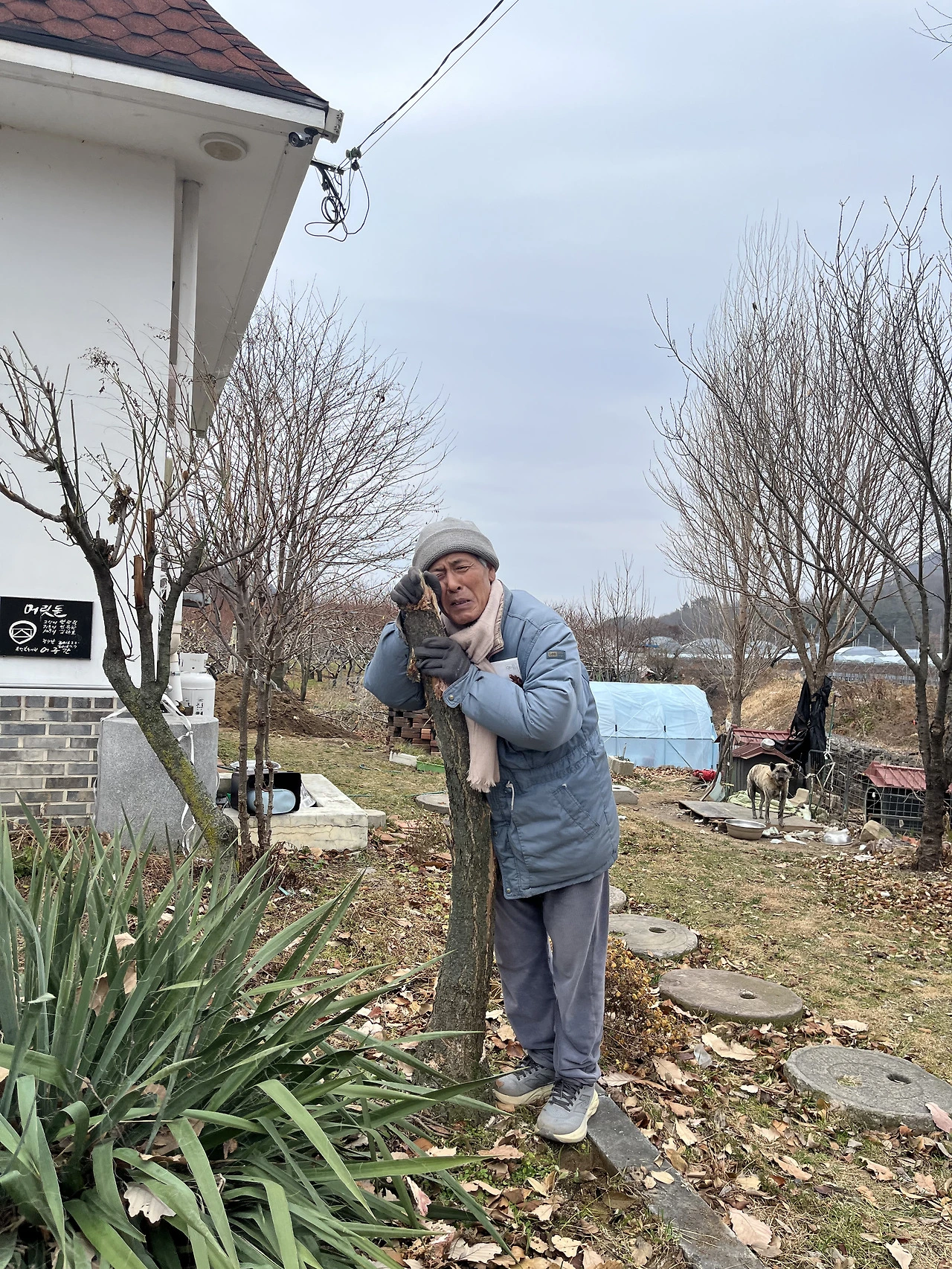 또한, 월류봉에서 가져온 바람의 친구, 추억의 나무 포풀러, 미루나무는 속성수라 3년도 안되어서 전깃줄과 지붕을 저해하게 되었다. 해서 포크레인 장비를 사용할 수 있을 때 정리하자 했다. 그랬더니, 남편은 분질러진 상수리나무 부둥켜안고 애잔해한다. 자기 맘대로지만 나무 가지 치고, 수형 잡는 유일한 몸운동으로 만들어진 나무들이니 어찌 그 마음을 제단 할 수 있을까?