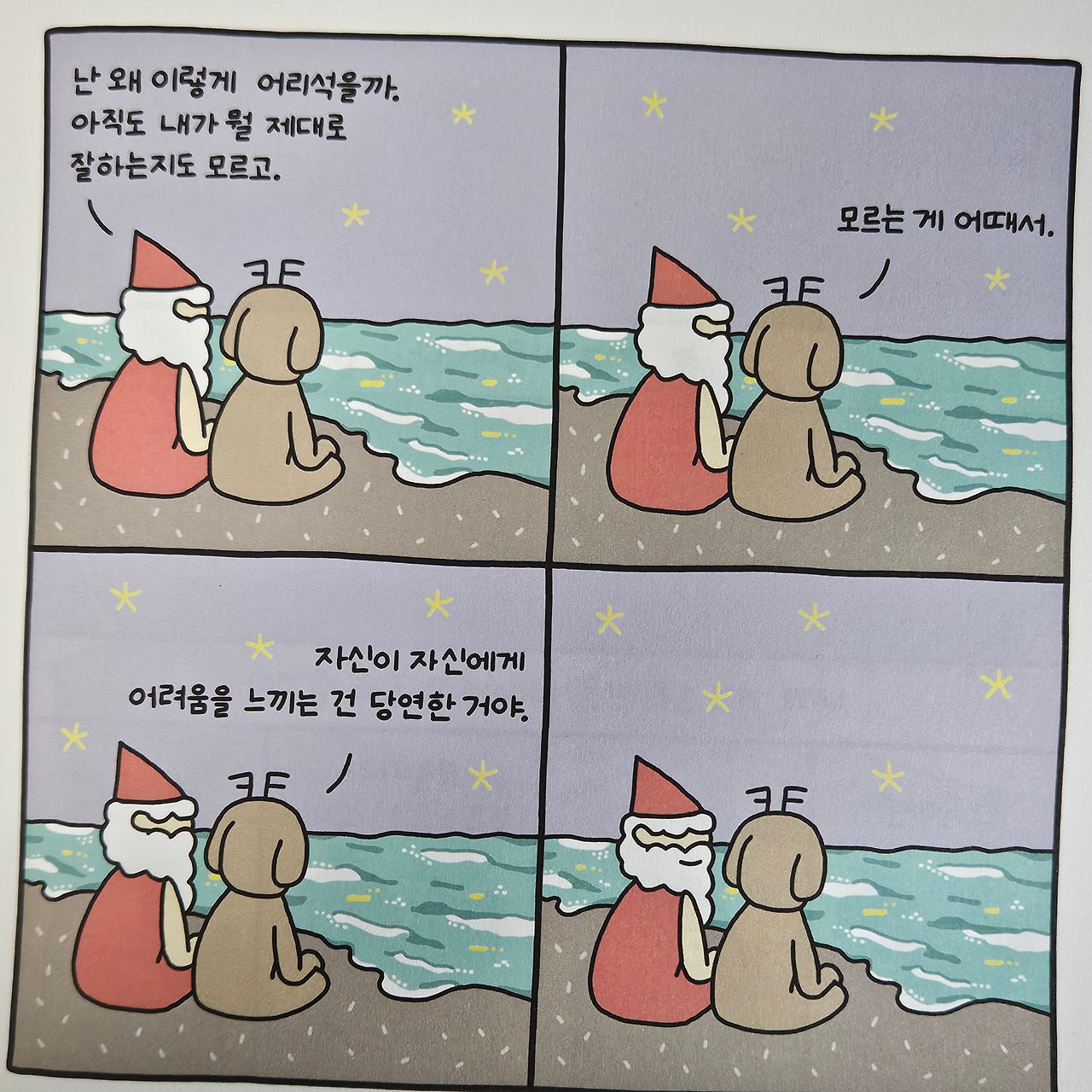당연하지! 얼마나 빈틈 있고 단단해. 그러니까 그런 찰나의 것들 때문에 네 전체가 흔들리지 마. 넌 괜찮은 인생을 살고 있고, 괜찮은 사람이야.
