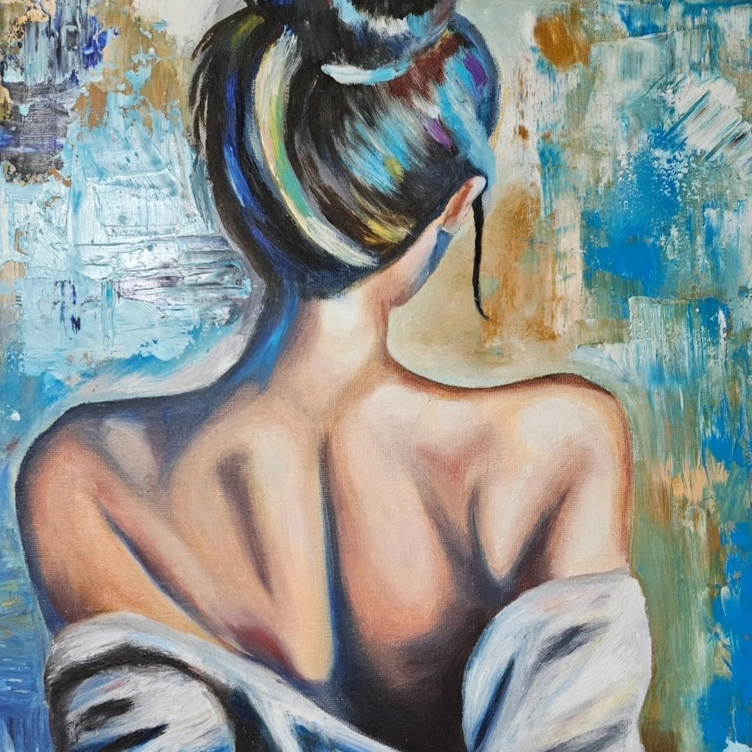 그림을 계속 그리기 위해 집 가까이에 있는 미술학원을 알아보았다. 다행히 걸어서 10분 거리에 가정 미술 학원이 있었다. 젊은 원장님은 지금도 여전히 활발하게 작품활동을 하시는 분이셨다. 선생님의 그림은 자연과 인간을 조화롭게 표현한 매우 아름다운 그림이었다. 특히 내가 마음이 끌린 건 선생님은 얼굴을 그리셨다. 선생님과 그림을 그리다 보면 내가 뒷모습만 그리는 이유를 알 수 있을 것 같았다.