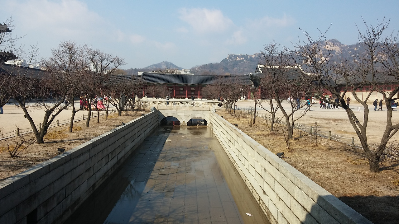 10-3. 경복궁 영제교와 금천. 전날에 비가와서 물이 조금 고여있다.