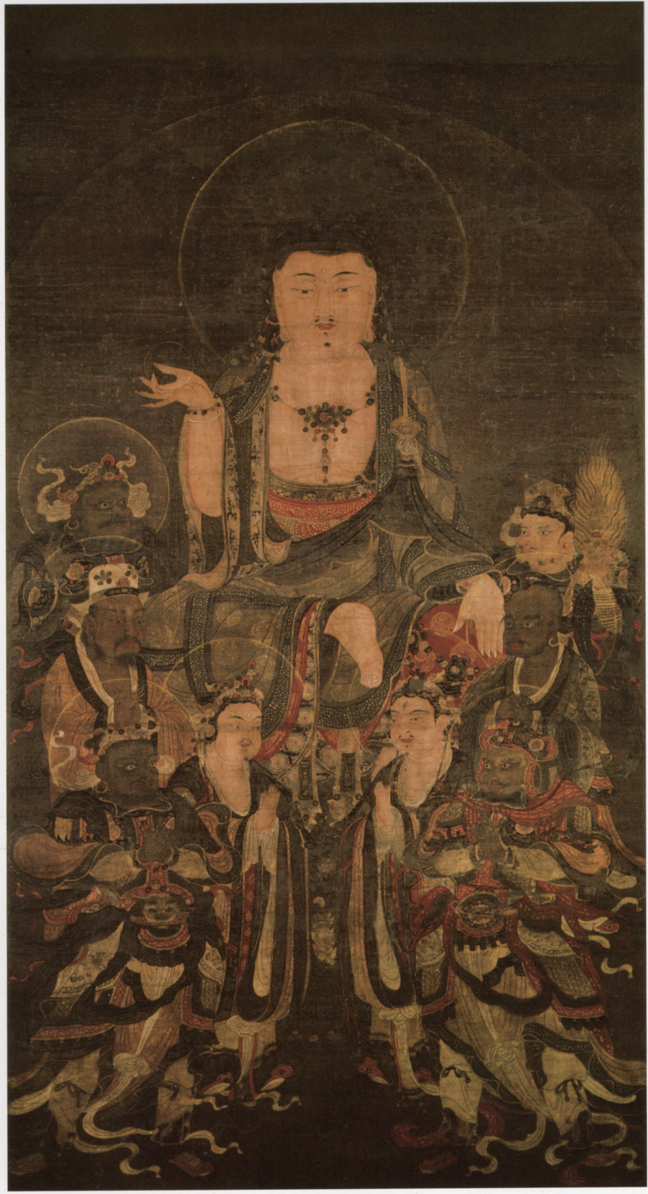 다만 조선 불화 중에도 고려 불화와 유사한 구도를 보이는 사례가 일부 있는데, 주로 왕실에서 발원한 불화가 그렇다. 아래의 사진들은 문정왕후가 1565년 회암사에서 발원한 400점의 불화 가운데 일부이다(사진7).