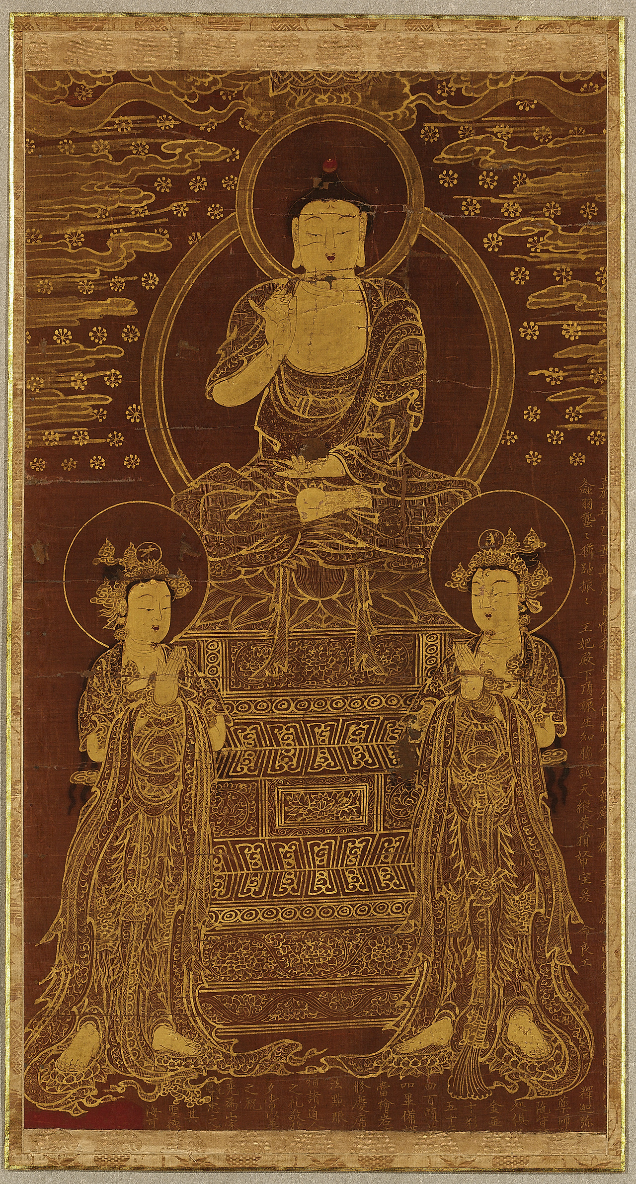 사진7. 좌측) <약사삼존도>, 국립중앙박물관 가운데)<약사삼존도>, 일본 류조인(龍乘院) 우측)<석가삼존도>, 미국 버크컬렉션