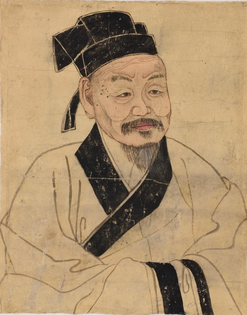 사진1. 국립민속박물관 소장 <주자 영정>과 13세기 동아시아 지도. 당시 송(宋)은 금(金)의 공격으로 수도 개봉이 함락된다. 이후 강남으로 후퇴하여 왕조를 이어가니 남송이된다.