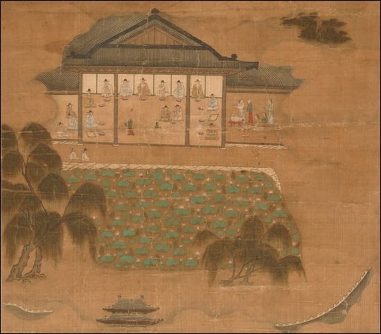 사진2. 동아대학교 석당박물관 소장 <남지기로회도>의 일부분, 숭례문 앞으로 남지가 보인다.(출처 : 데일리안, 연합뉴스, 정책브리핑)