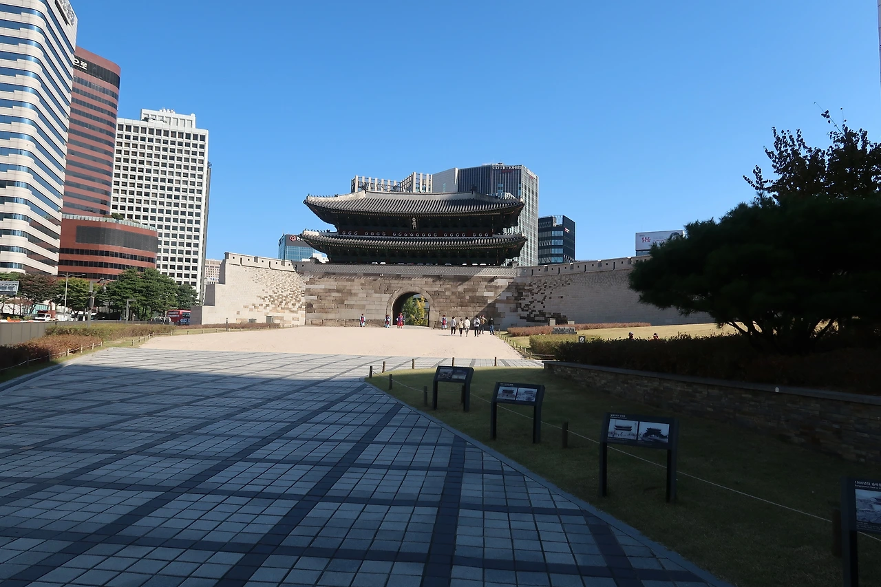 넷째, 숭례문에서 광화문에 이르는 길을 틀어놓았다. 옛날 사람들은 좋든 싫든 특정 기운이 대문과 도로를 통해 들어온다고 생각했다. 그래서 화마가 경복궁에 직접 닿지 않도록 광화문과 숭례문을 곧장 연결하지 않았던 것이다. 숭례문도 잘보면 정남향으로 세우지 않고 약간 서쪽으로 틀어놓았다(사진3).