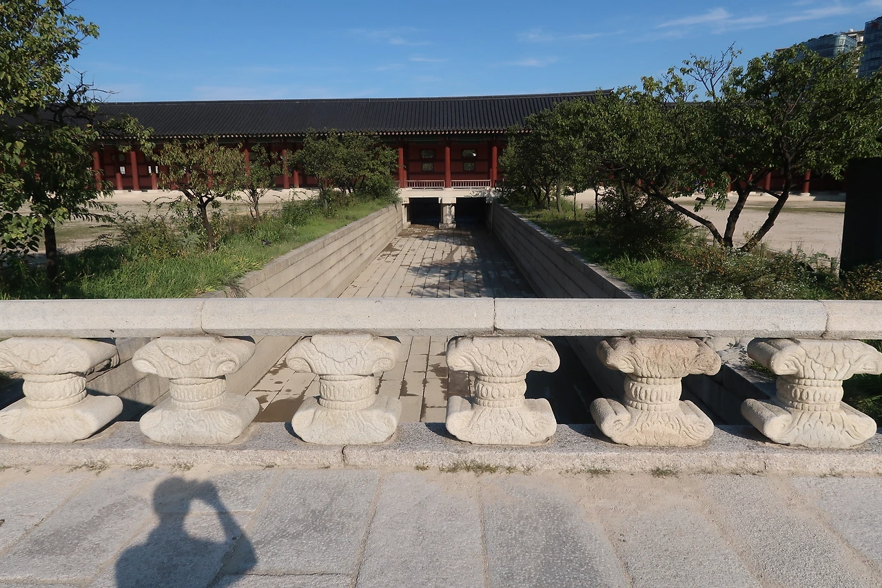 여섯째, 흥례문과 근정문 사이에 금천(禁川)을 흐르게 하였다. 불은 물에 약하므로 다시한번 물을 통과하도록 만든 것이다. 이 금천은 궁궐의 명당수 역할도 겸한다(사진6).