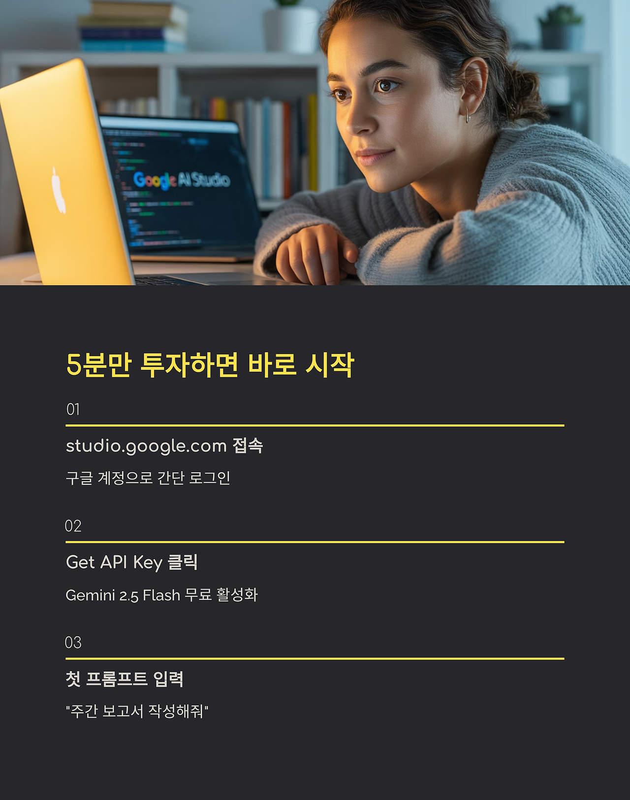 내일 아침 출근길, 지하철에서 스마트폰을 꺼내라. studio.google.com에 접속하라. 5분이면 충분하다. 그 5분이 당신의 하루를, 한 달을, 그리고 커리어 전체를 바꿀 것이다.