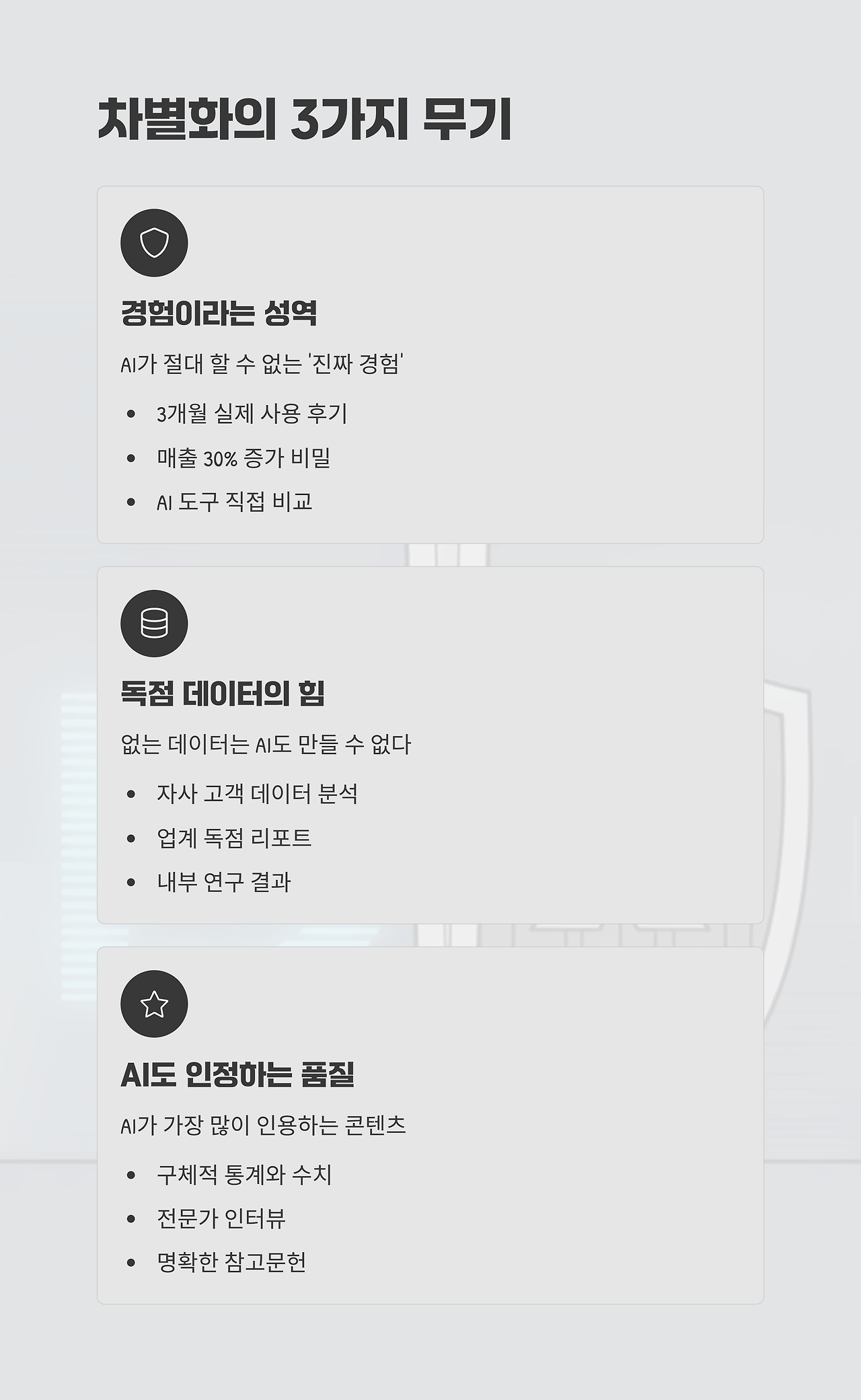 즉, AI 시대에 살아남는 콘텐츠는 역설적으로 더 인간적이고, 더 전문적이어야 한다는 뜻입니다.