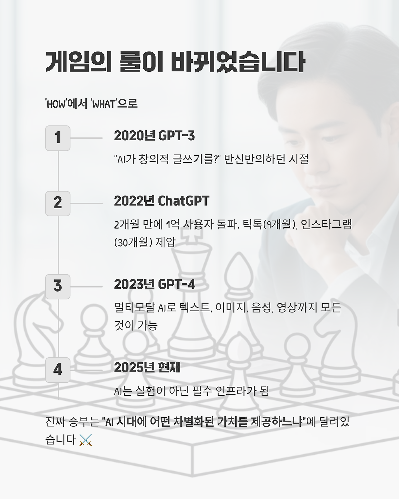 이제 AI 콘텐츠는 선택이 아닌 생존의 문제가 되었습니다.