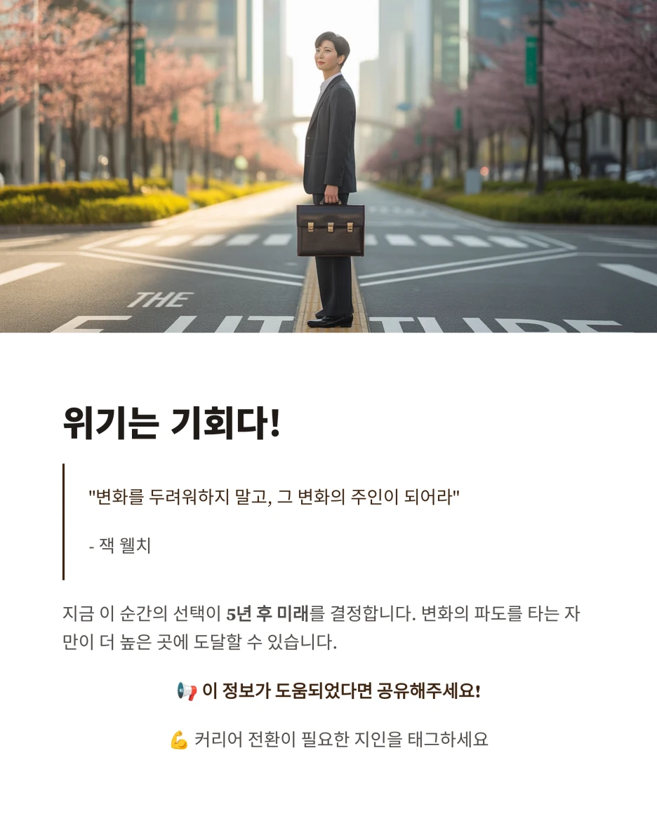 30년간 수많은 직장인들의 커리어 여정을 지켜본 필자가 확신하는 것은, 진정한 승자는 변화를 두려워하지 않는 사람이라는 것입니다.