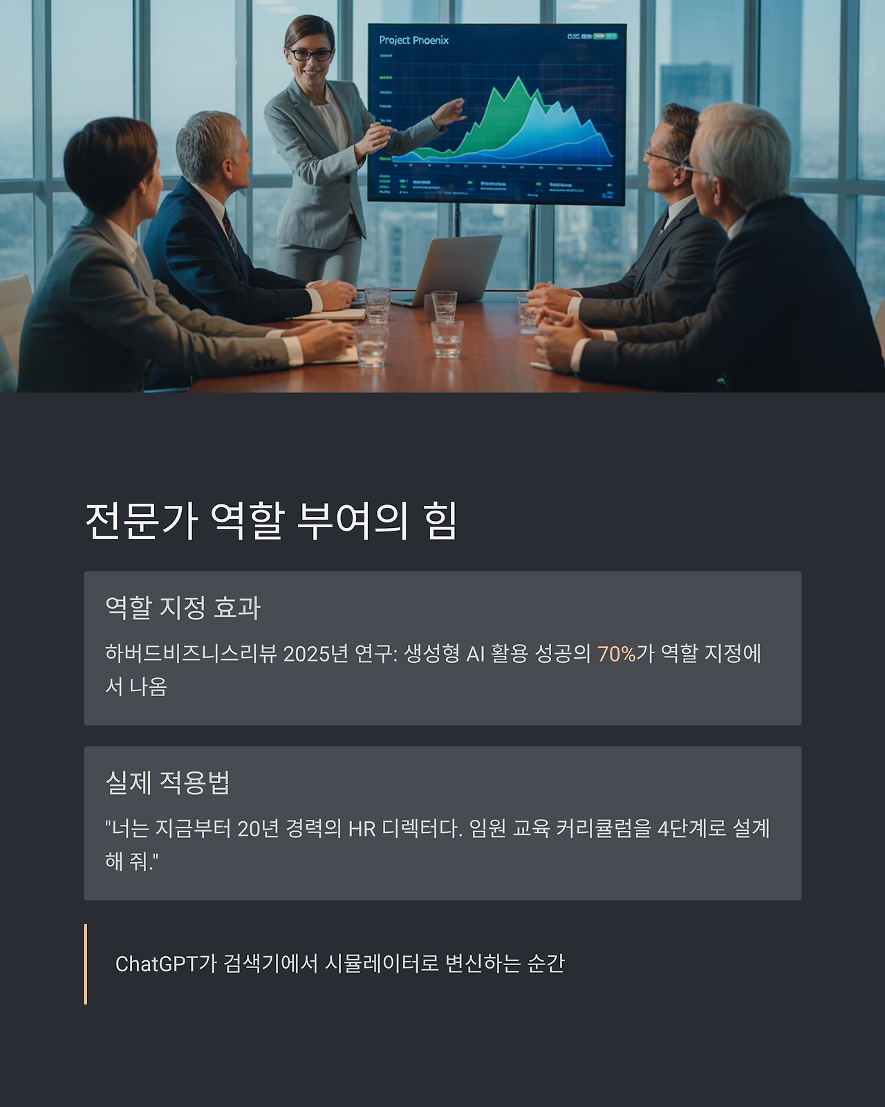 2025년 《하버드비즈니스리뷰》는 생성형 AI 활용 성공의 70%가 **‘역할 지정’**에서 나온다고 밝혔습니다.