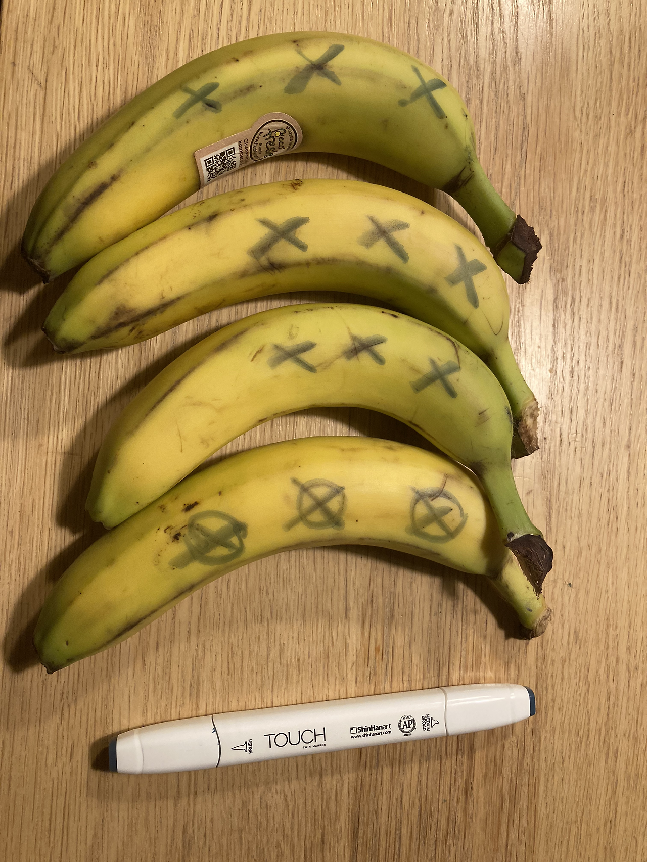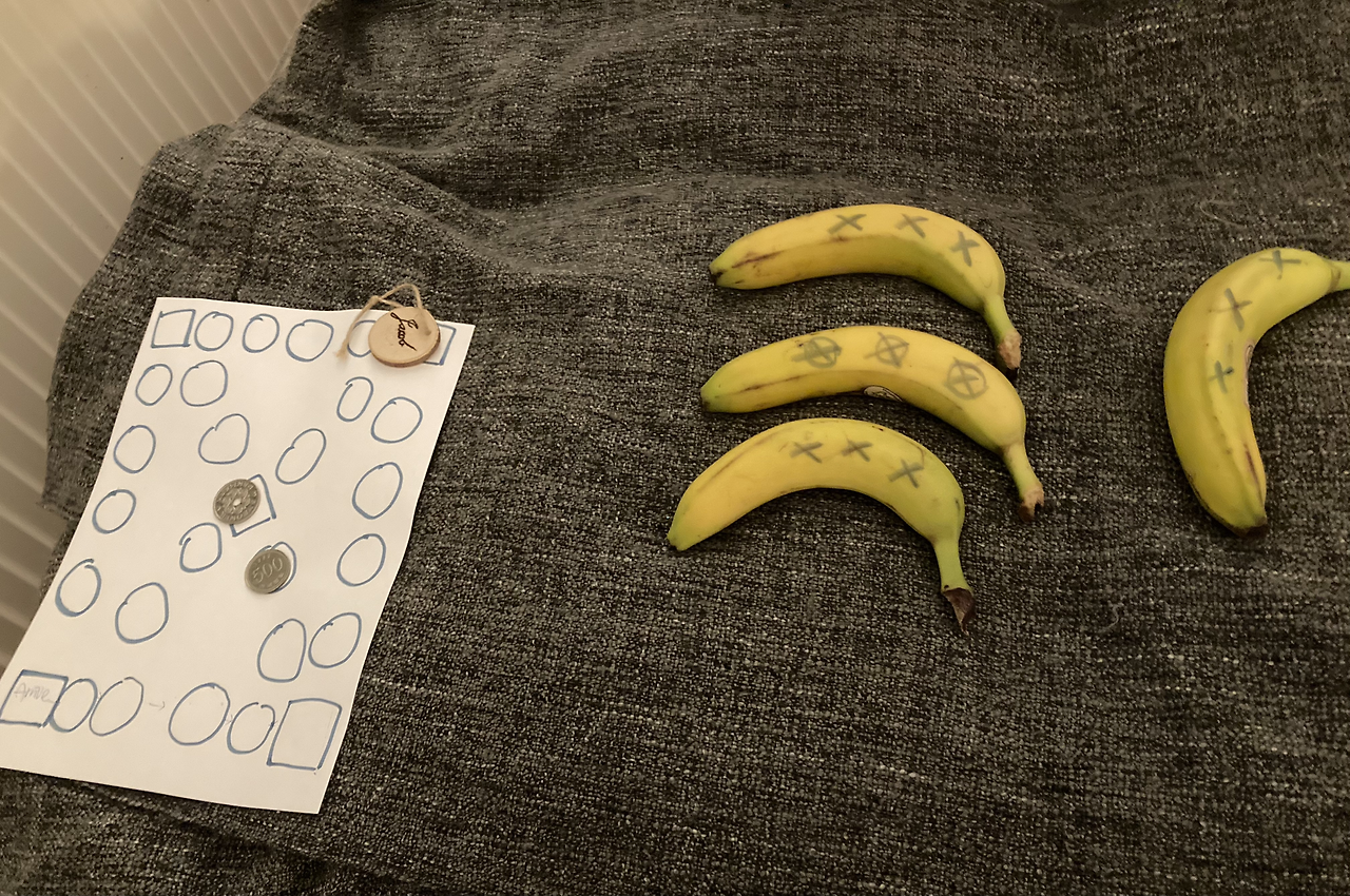 일단 바나나에 표시를 해두고, 급하게 바둑돌이 될 만한 것을 찾았다.