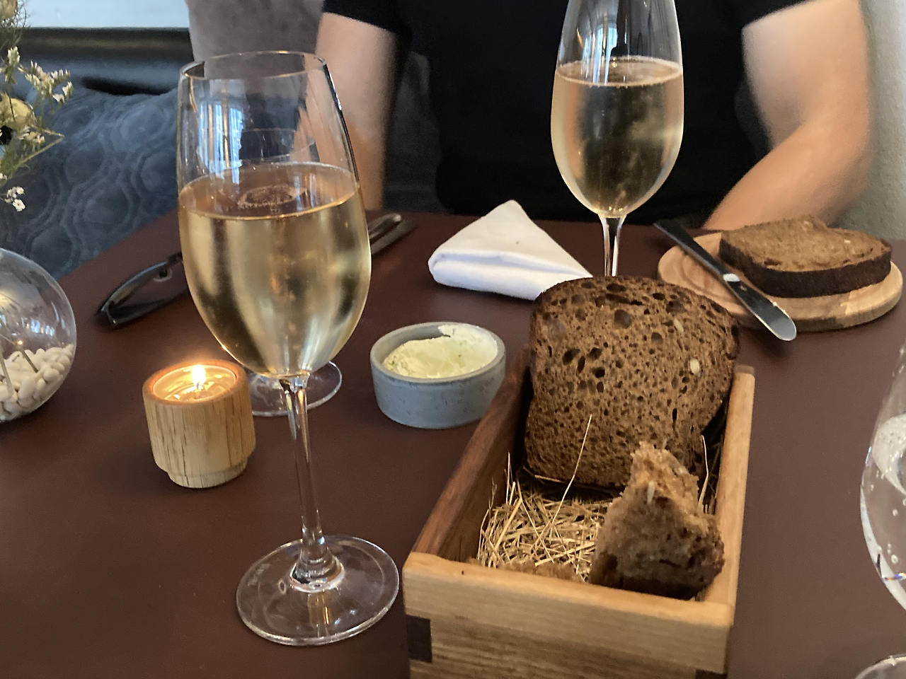식전으로는 호박 씨앗이 들어간 사워도우 빵과 크림버터였다.