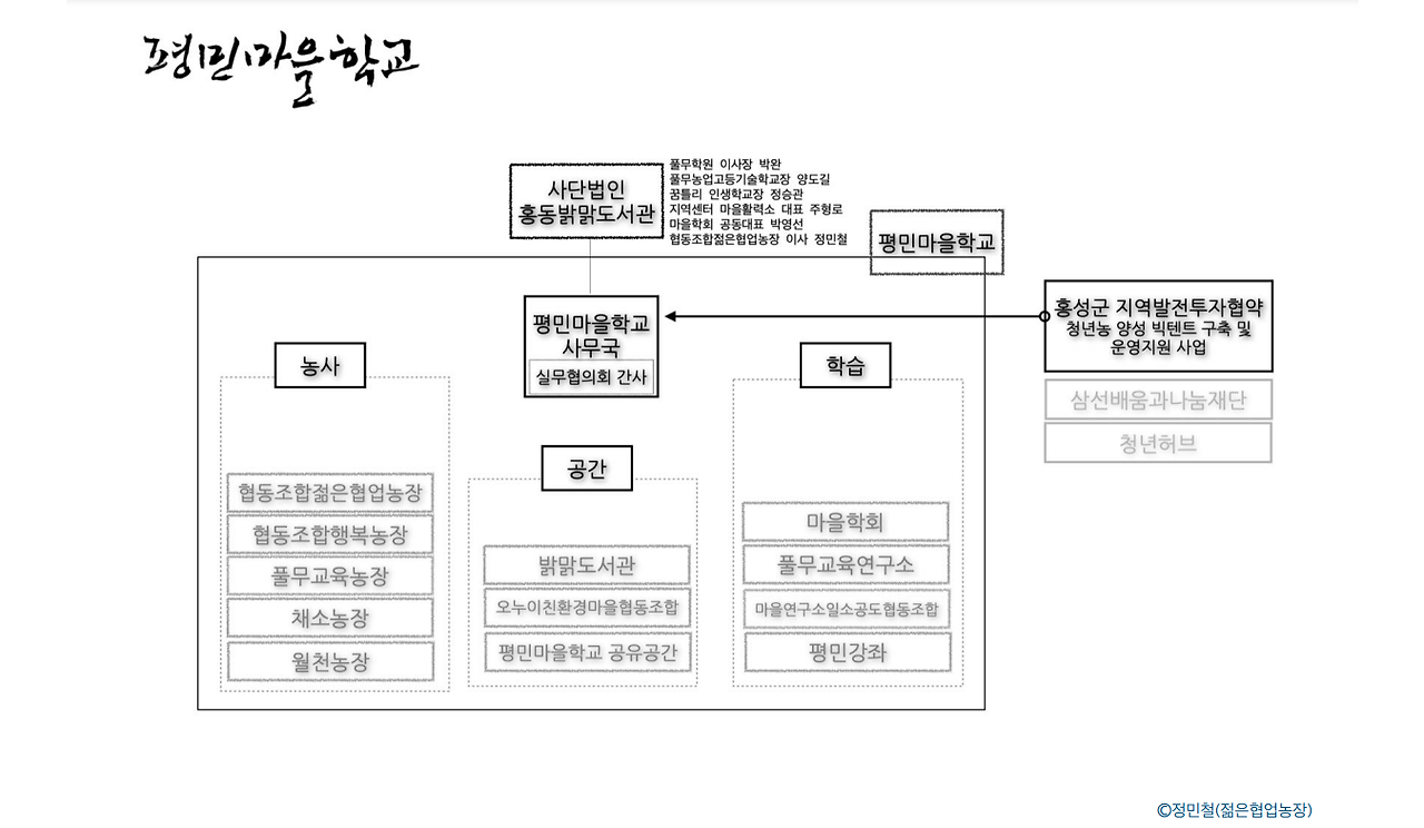 예를 들면 저녁마다 여는 교육을 진행하는 평민마을학교, 조직도가 이렇다.