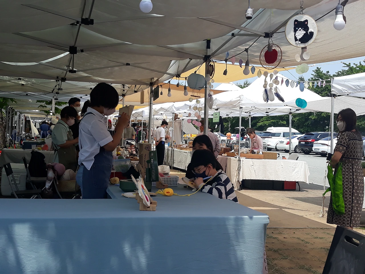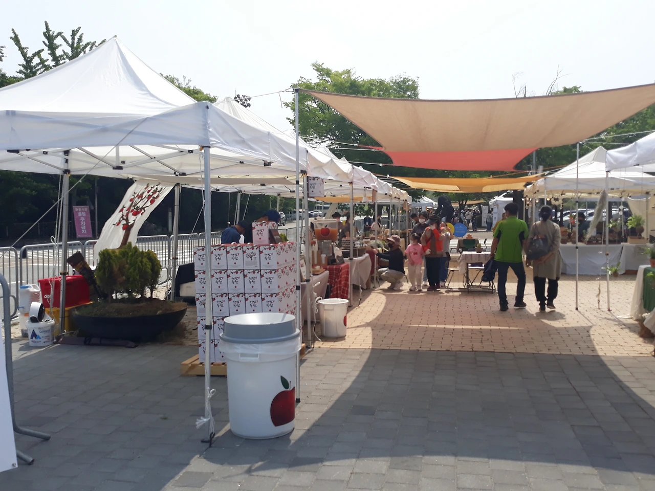 마켓 천막을 설치하고 끝나고는 철거하는 것도 다같이 한다.