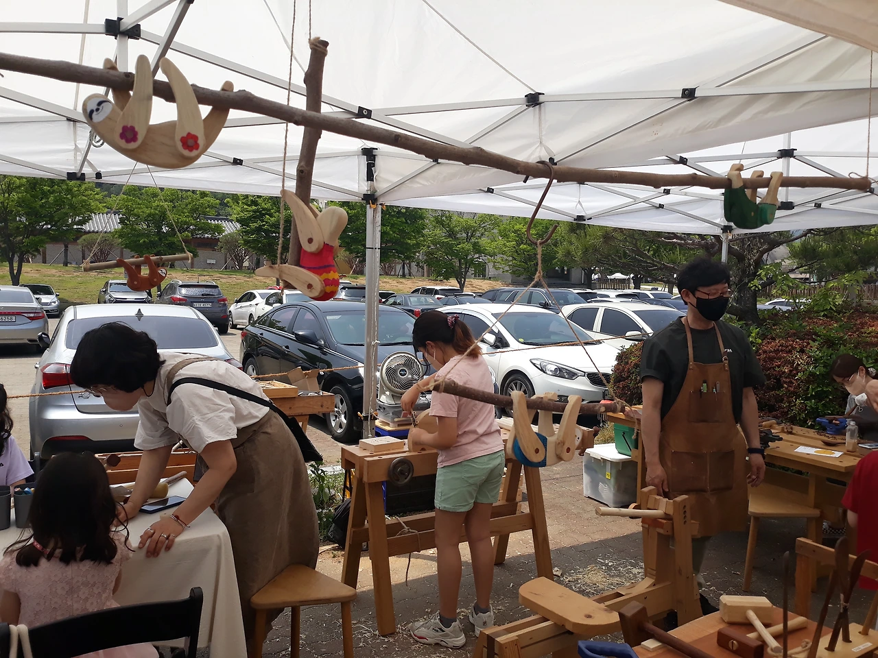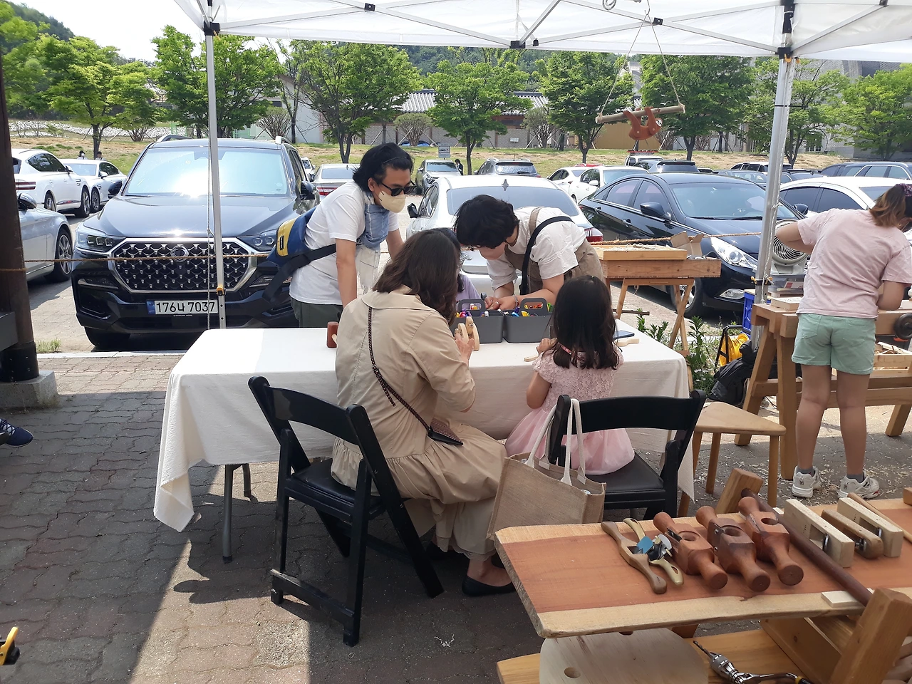 장터 중간중간 마련된 테이블들도 각자 가져오는거래.