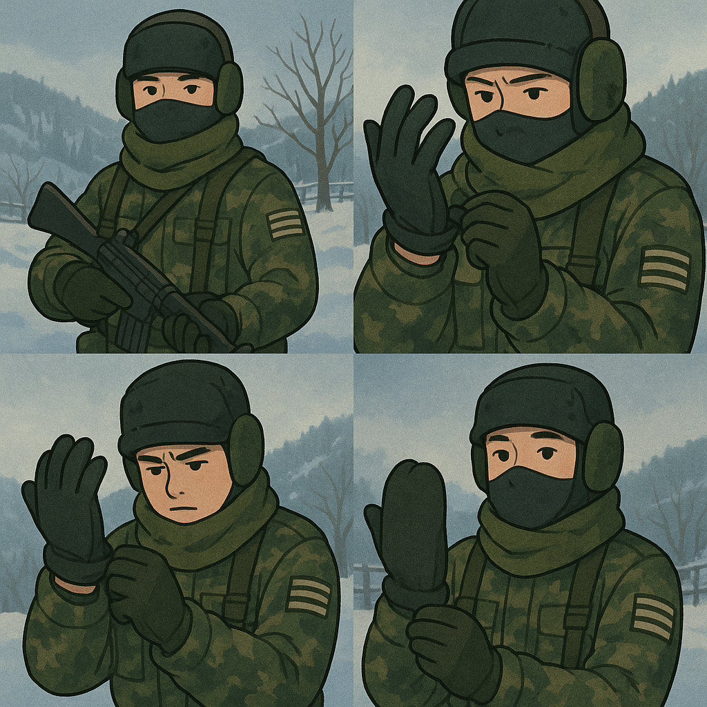 야간 매복 훈련의 진짜 고통은 훈련 자체가 아니라, 움직이지 못하는 상태에서 추위를 견뎌내는 것이었다. 영하 19도의 어둠 속에서 가장 먼저 감각을 잃는 것은 손가락이었다. 손가락이 나뉜 장갑으로는 한 시간도 버티지 못했다.