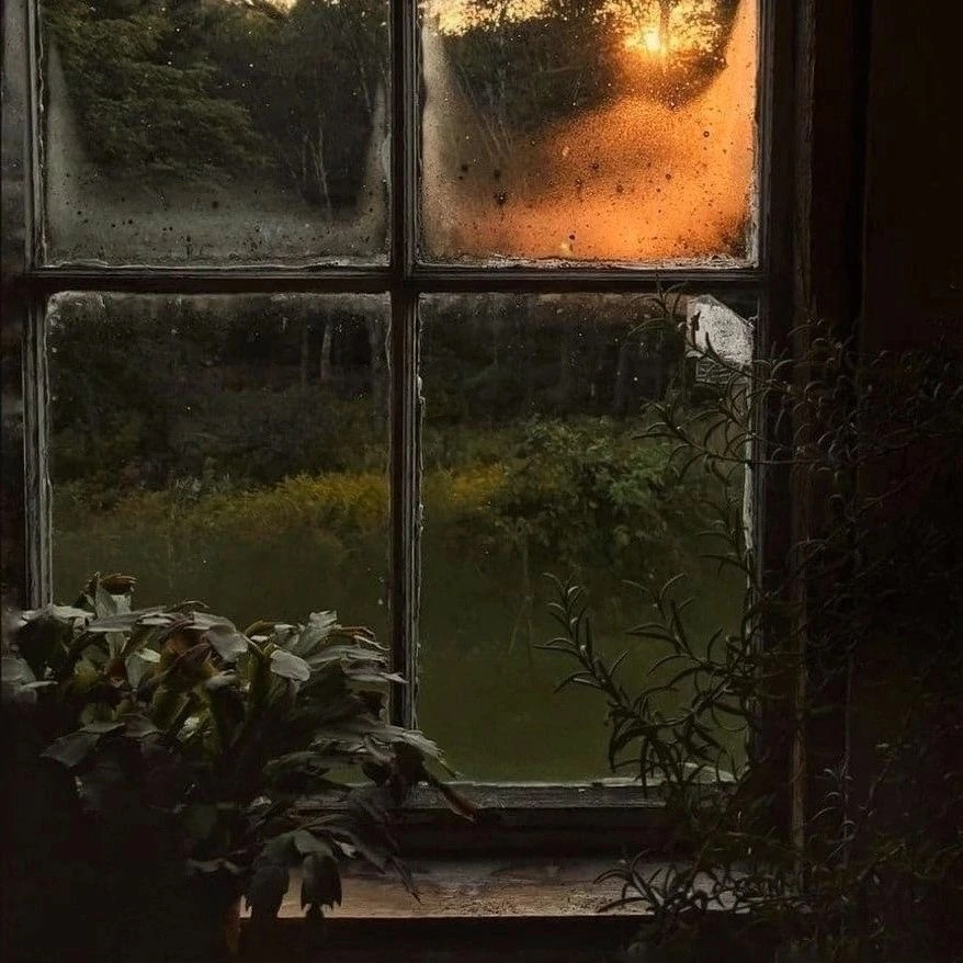창문을 두들기는 빗방울을 바라보고