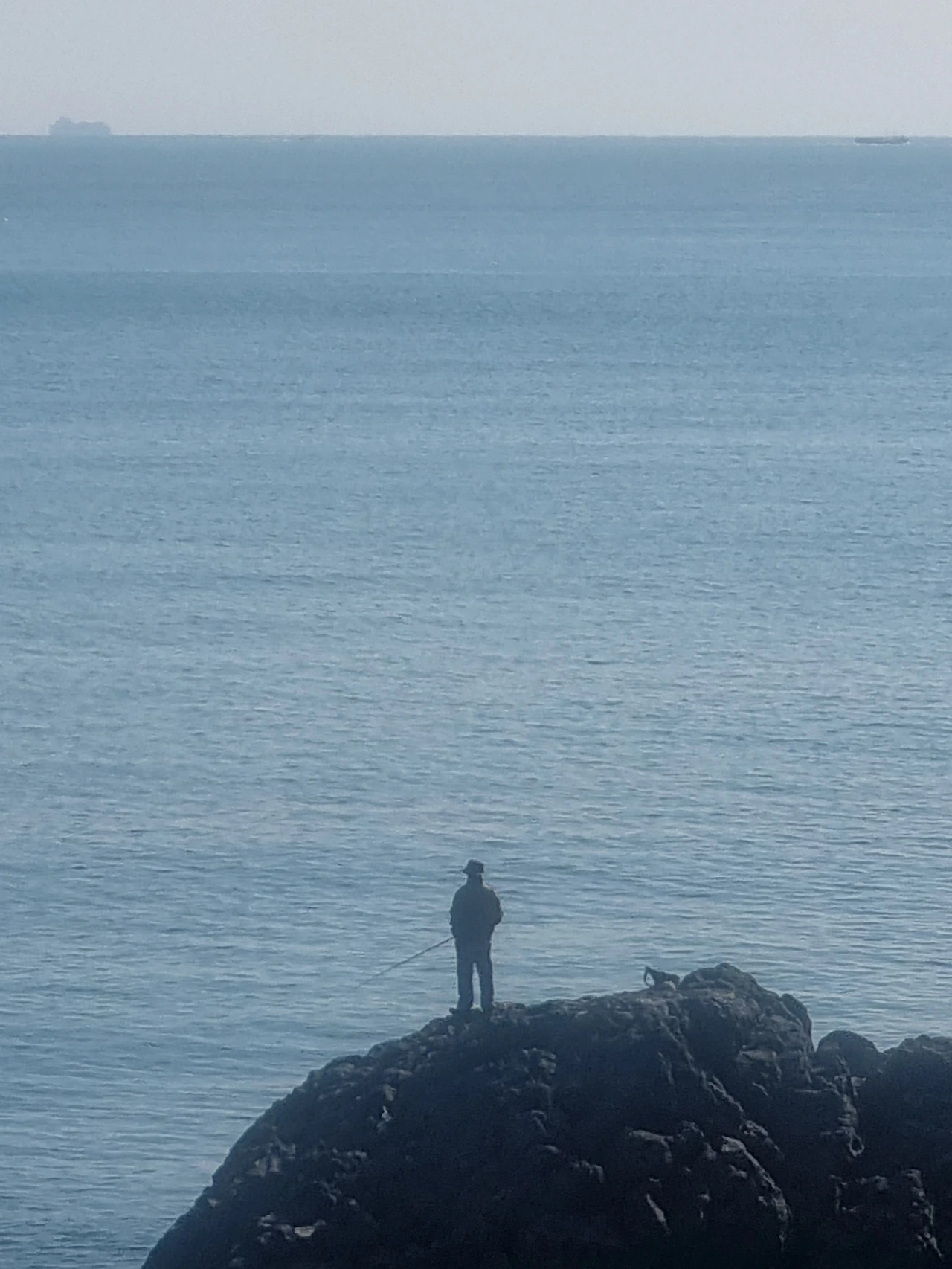낚싯대를 들고 홀로 선 사람이 보였다