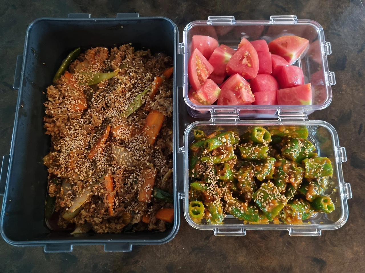 넉넉하게 제육볶음과 오이고추 된장무침에