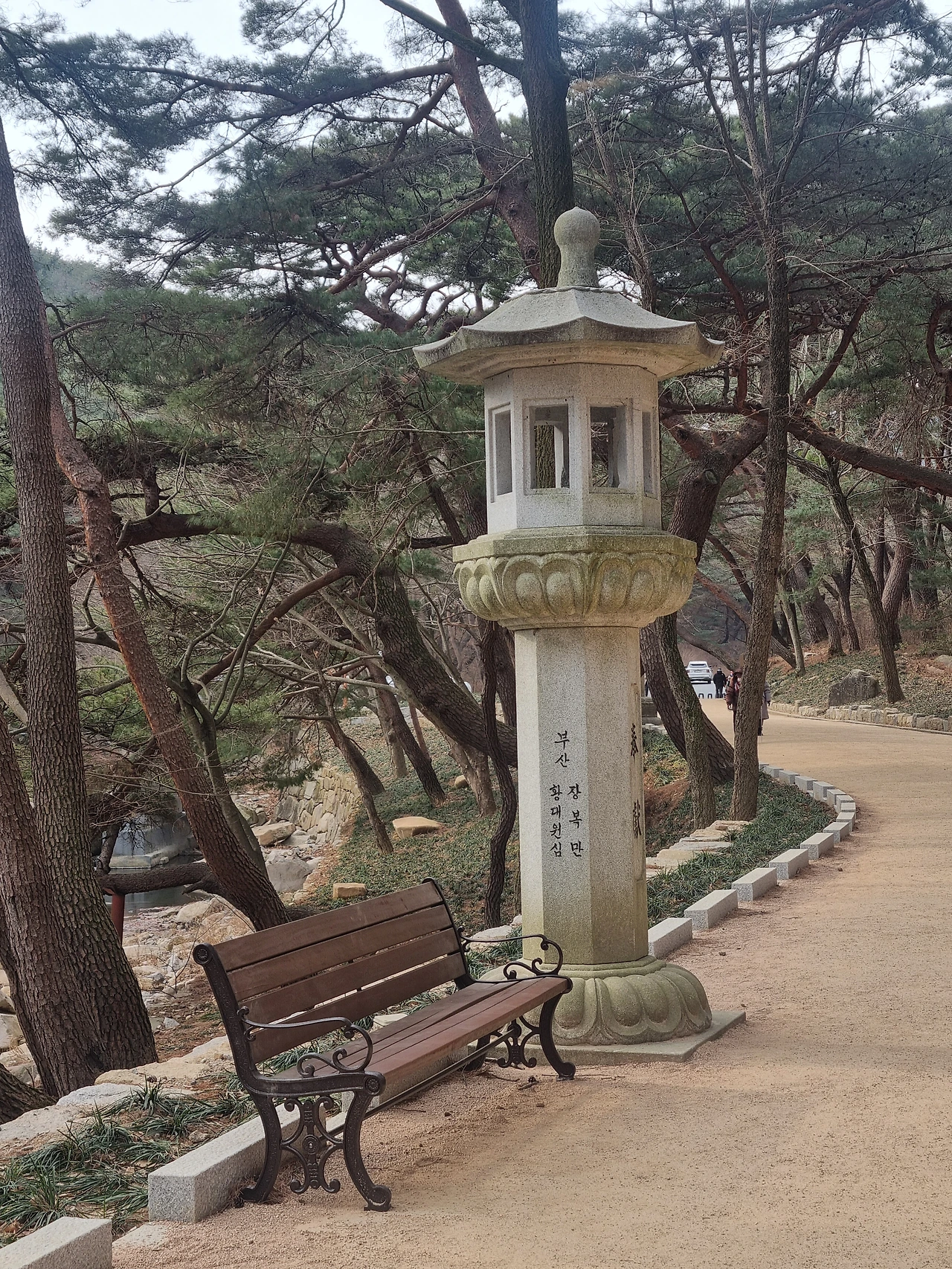 소나무 오솔길의 군데군데에 벤치가 생겨서